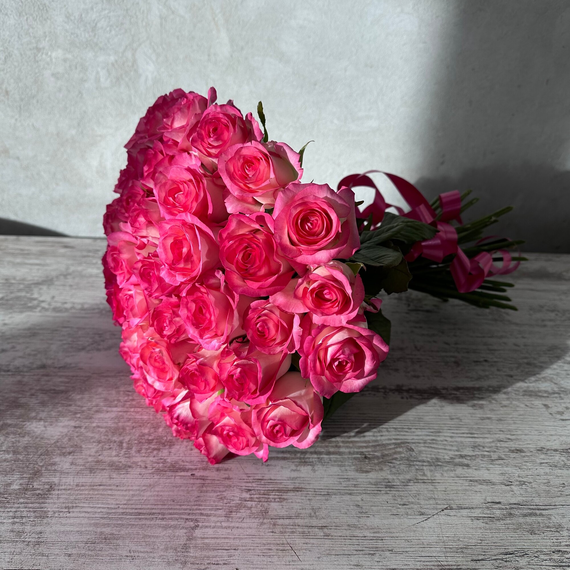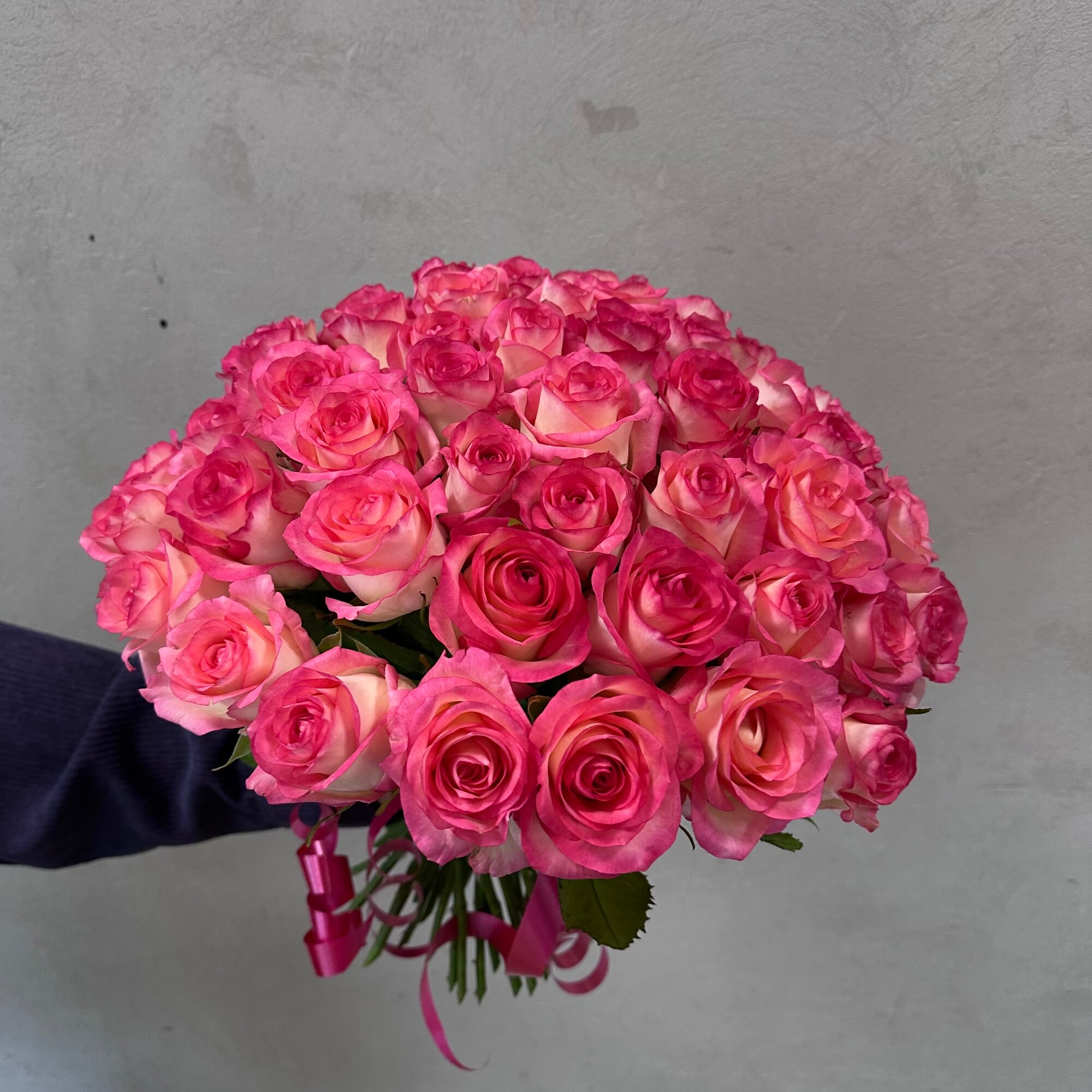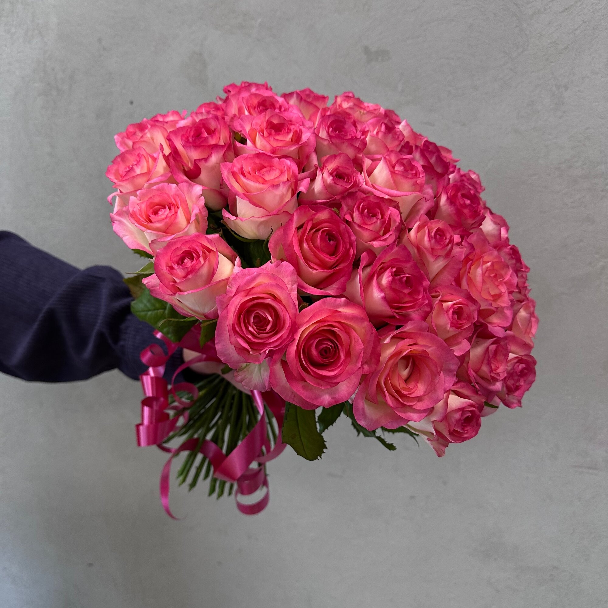 Купить Живые цветы букет роз 51 шт. 40 см. бело-розовый "С теплыми пожеланиями", Rurose