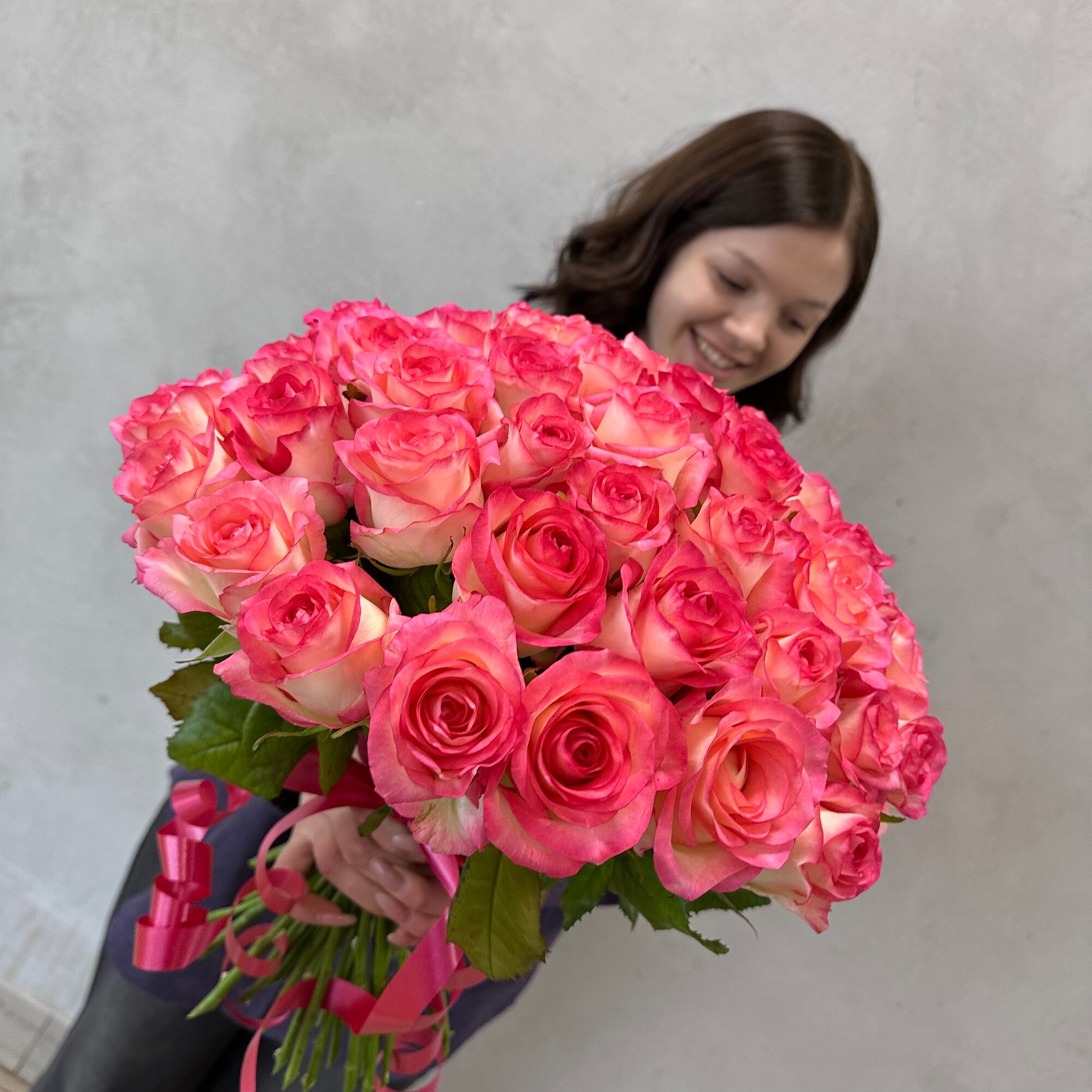 Живые цветы букет роз 51 шт. 40 см. бело-розовый "С теплыми пожеланиями", Rurose интересное: