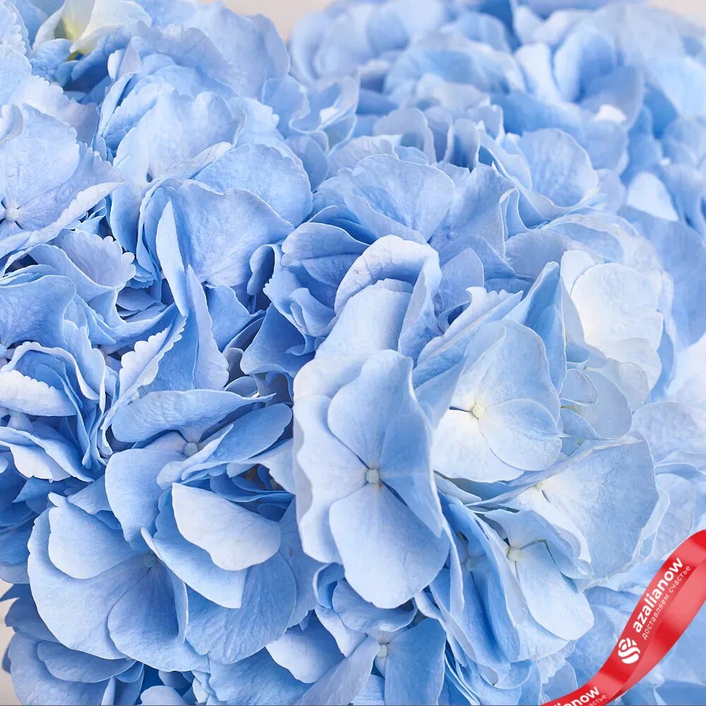 Букет из 5 голубых гортензий «Небо из 5 гортензий» оформленный в нежную матовую упаковку от АзалияНау