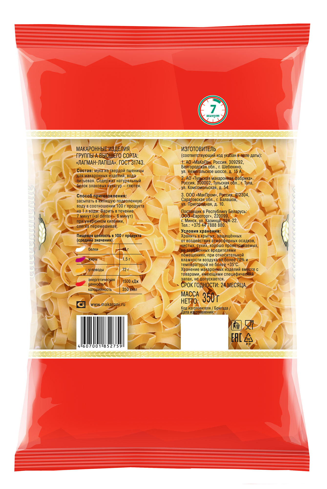 Макароны Шебекинские "Лагман-лапша" №517, из твердых сортов пшеницы, без добавок, постные, 350 гр. интересное: