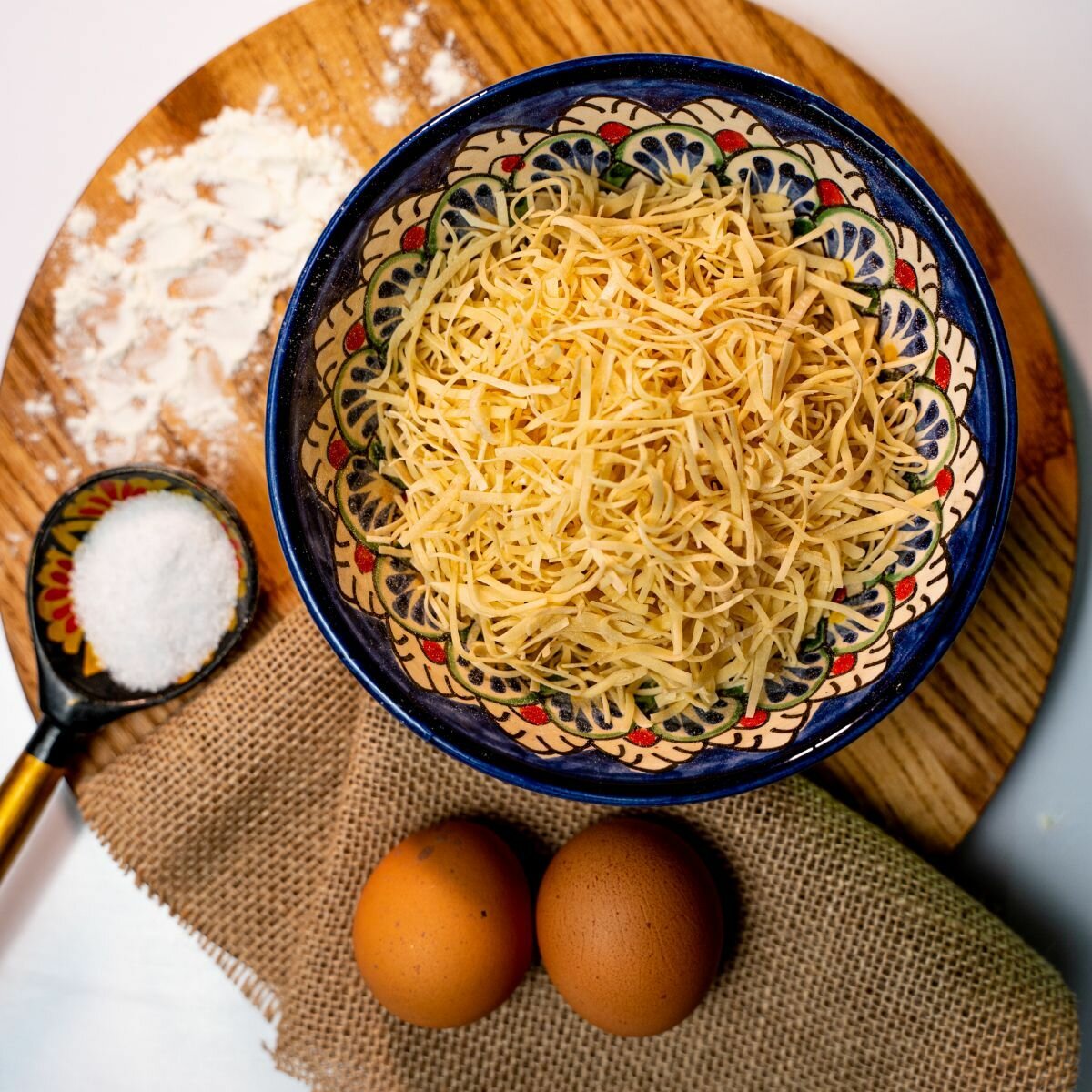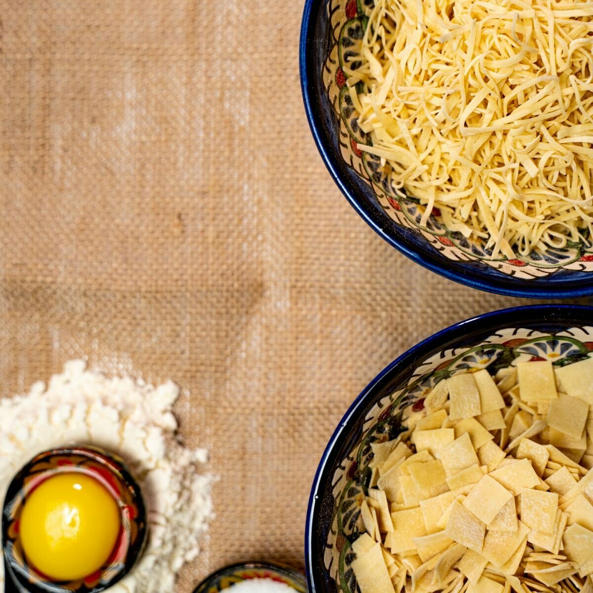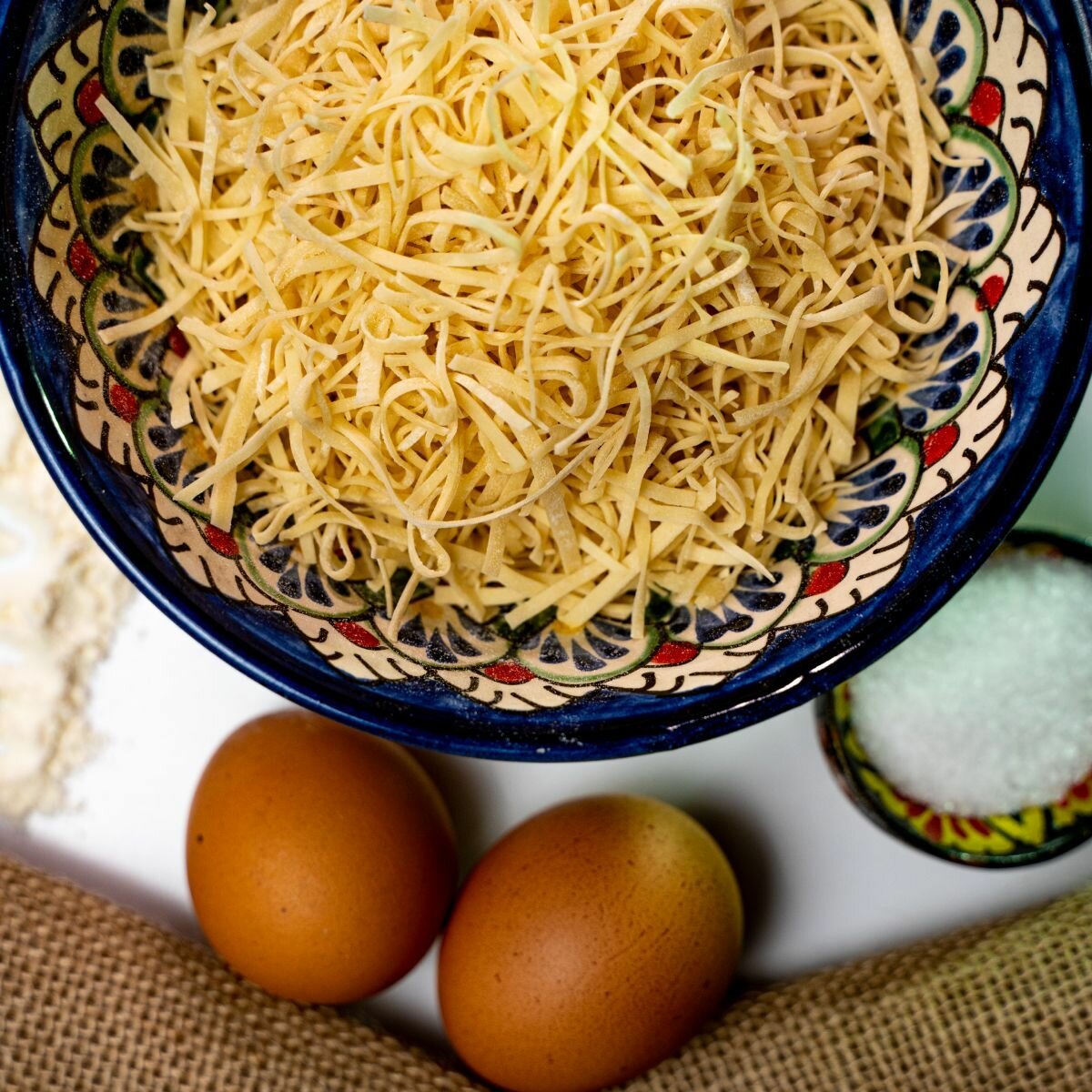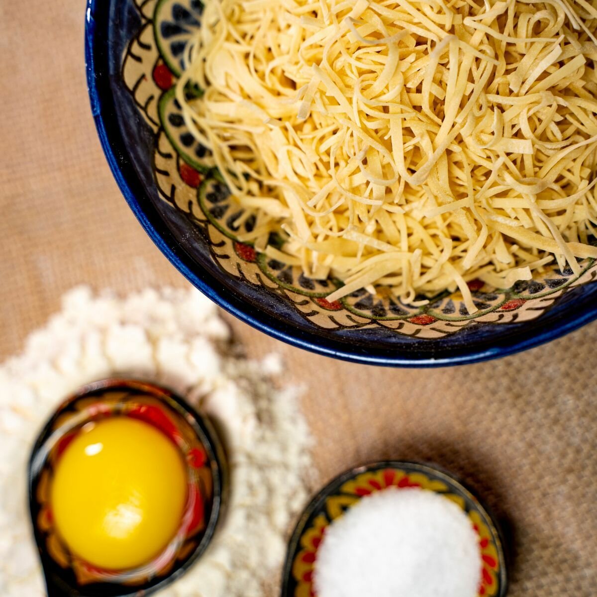 | Стандарты производства | Лапша изготовлена посредством ручной лепки, в составе только натуральные продукты: мука пшеничная, яйца, вода, соль. |
