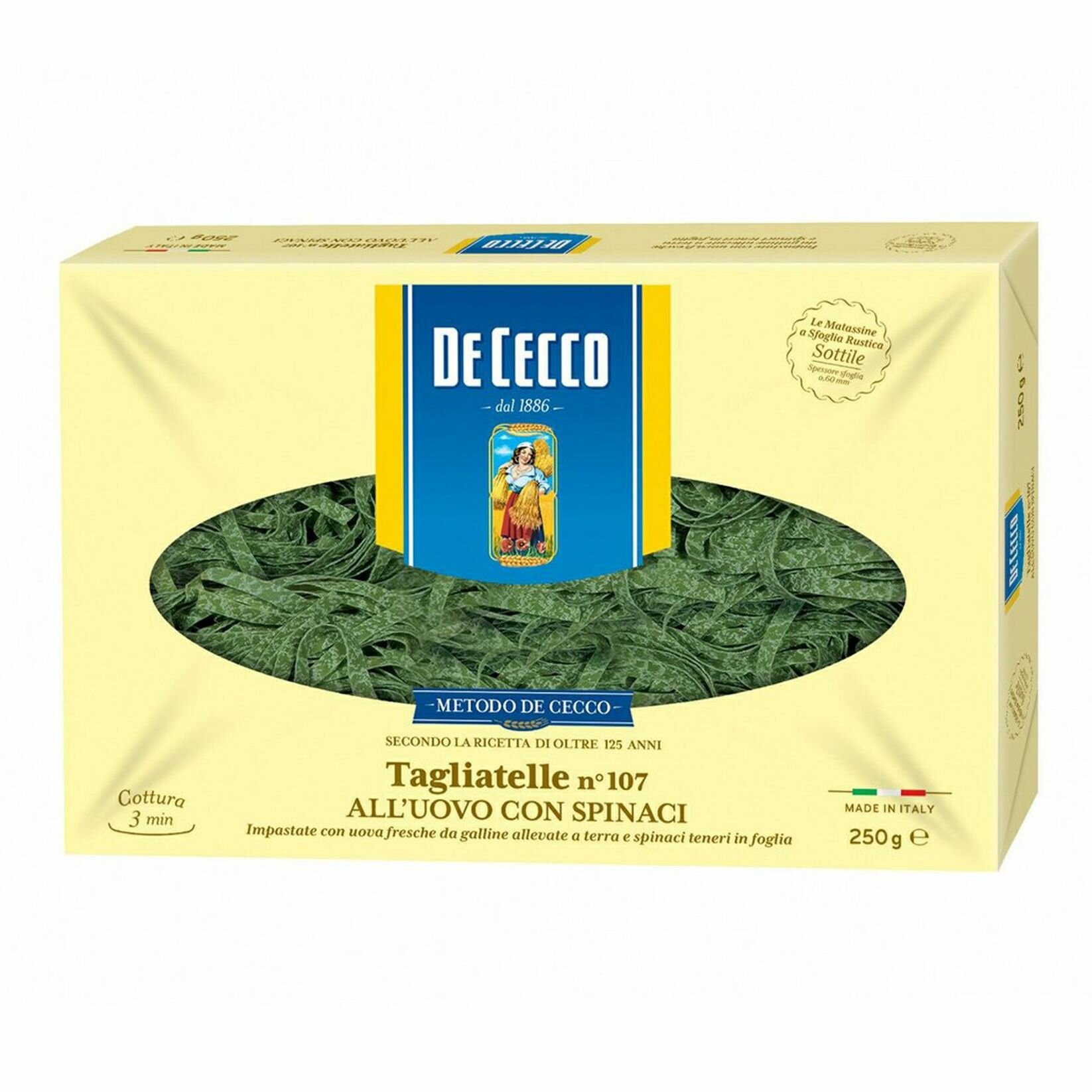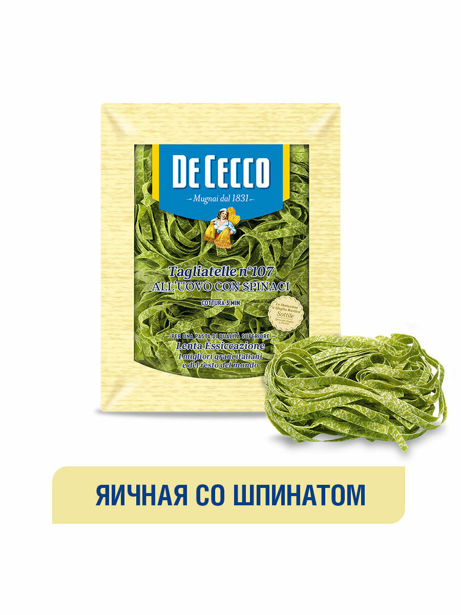 Макаронные изделия DE CECCO №107 яичные Tagliatelle all’uovo con spinaci (Тальятелле со шпинатом)