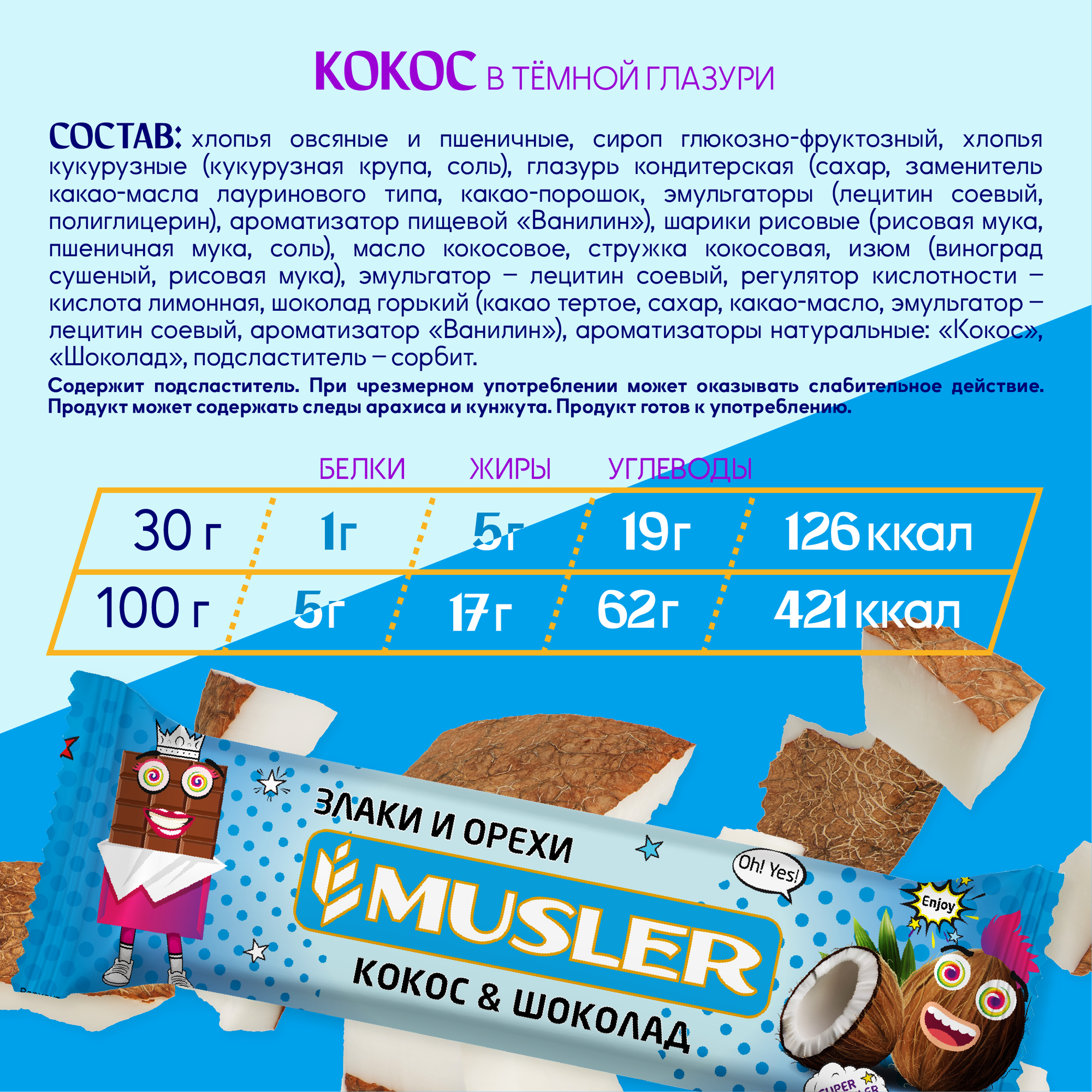 Ореховые батончики мюсли Musler "Кокос и шоколад" 30г (12шт)