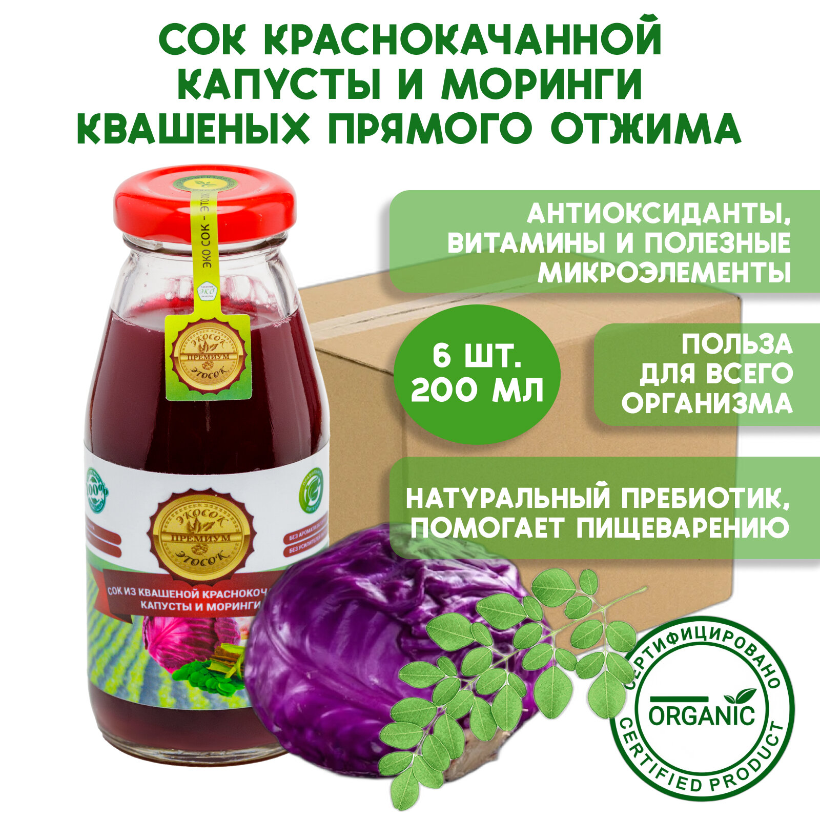 Купить Сок Эко сок - Это сок из квашеной краснокочанной капусты 0,2 л. Упаковка 6 шт.
