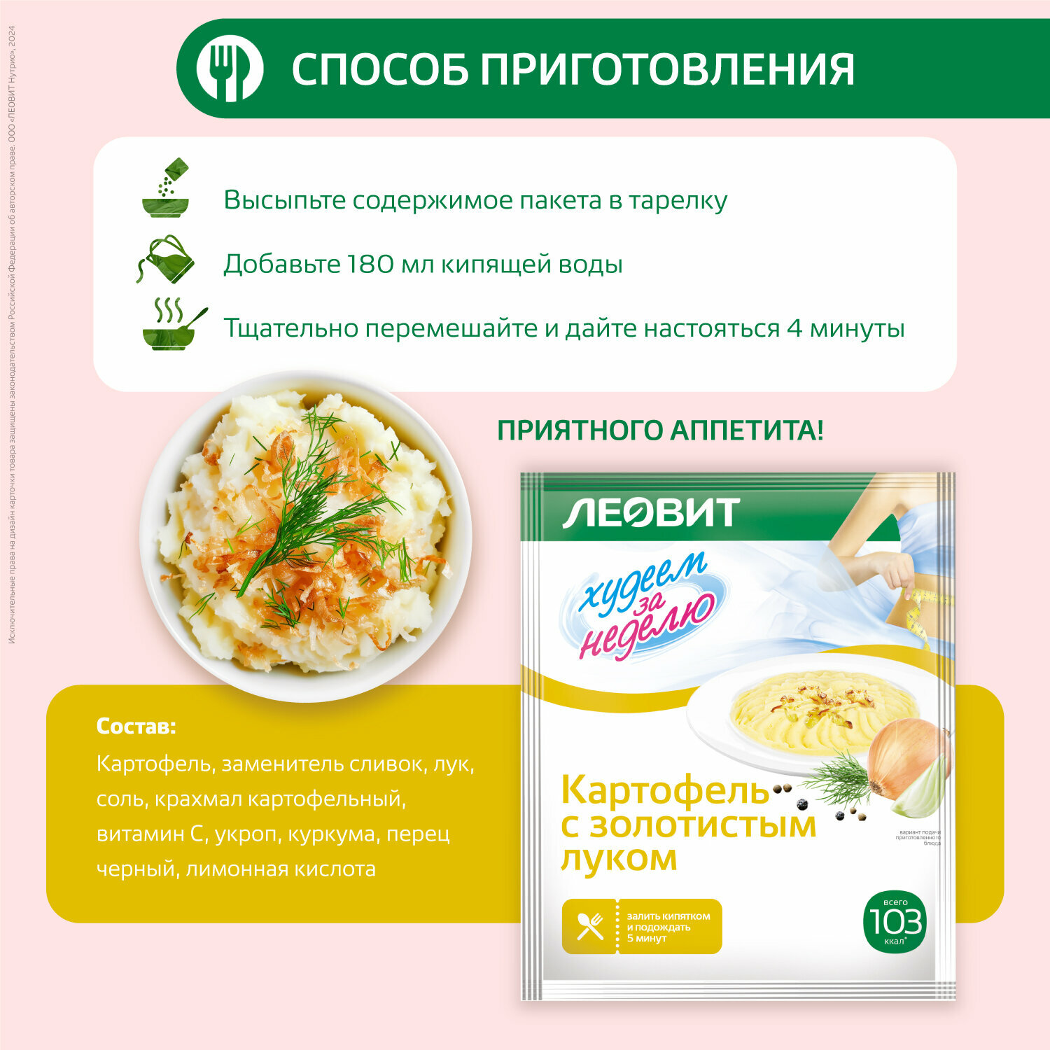 Картофель с золотистым луком диетический 15 шт 30 г Худеем за неделю от ЛЕОВИТ для похудения пюре быстрого приготовления