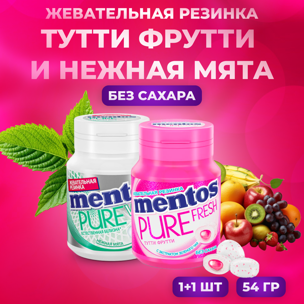 Жевательная резинка Mentos Pure Fresh Тутти-Фрутти, 6 шт по 54 г