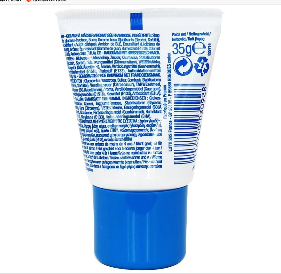 Lutti Tubble Gum Framboise жвачка в тюбике малиновая 35 гр