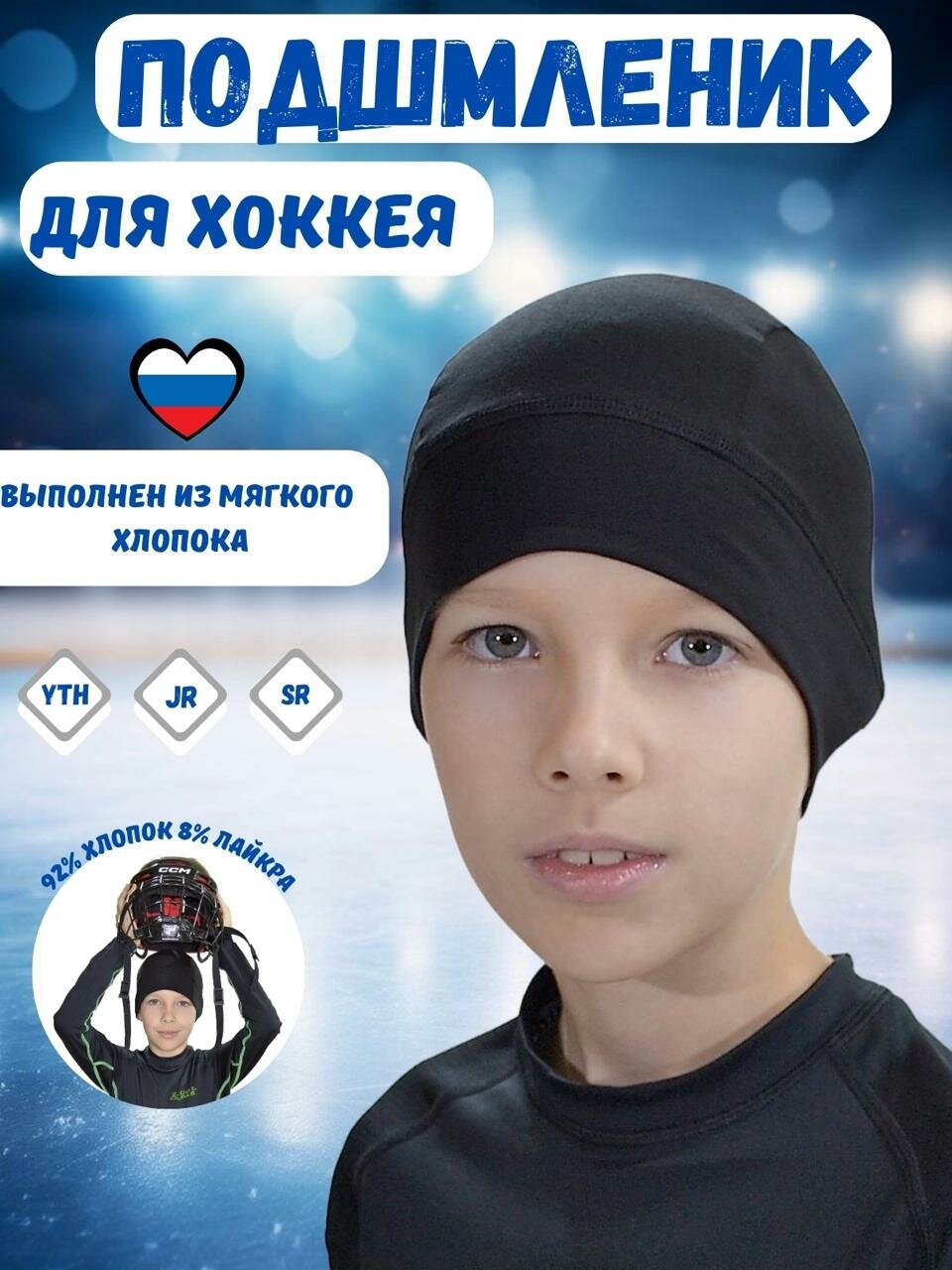 Подшлемник Staill YTH для хоккея, бэнди, горных лыж, сноубординга, хлопок с лайкрой, черный, размер 53-55 интересное: