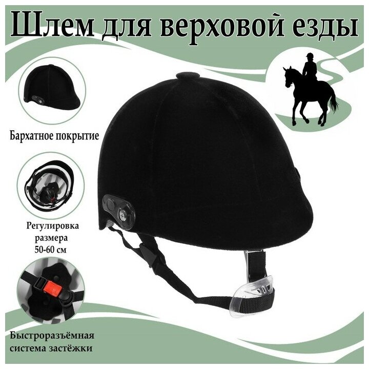 Шлем для верховой езды, бархат, одноразмерный, черный