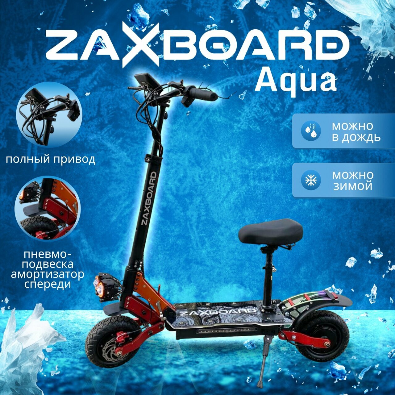 Внедорожный полноприводный электросамокат ZAXBOARD Grizly V2 AQUA TEM-245 18ah 46a с аквазащитой