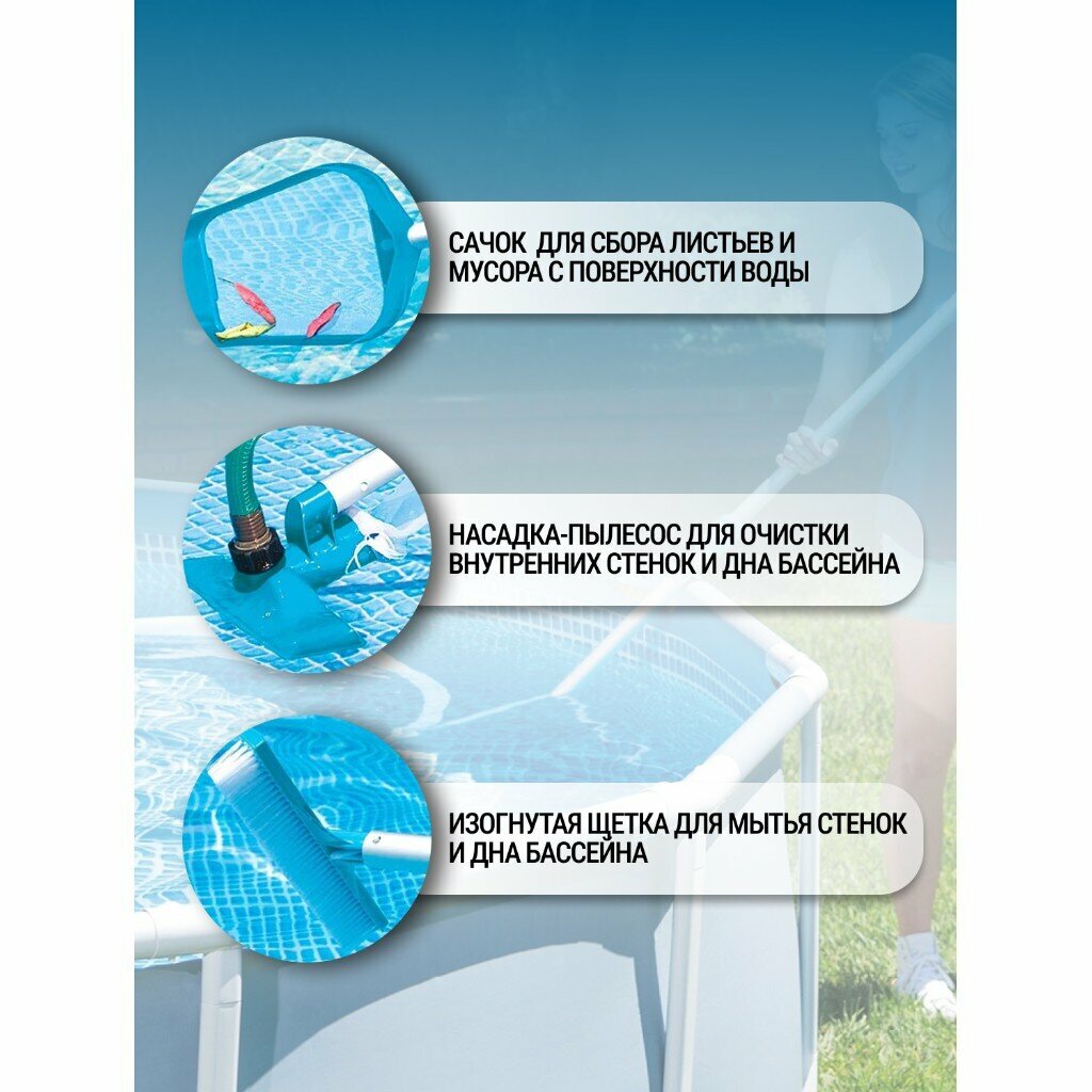| Дополнительная информация | набор предназначен для чистки бассейнов диаметром 244/305/366/457/488см |
