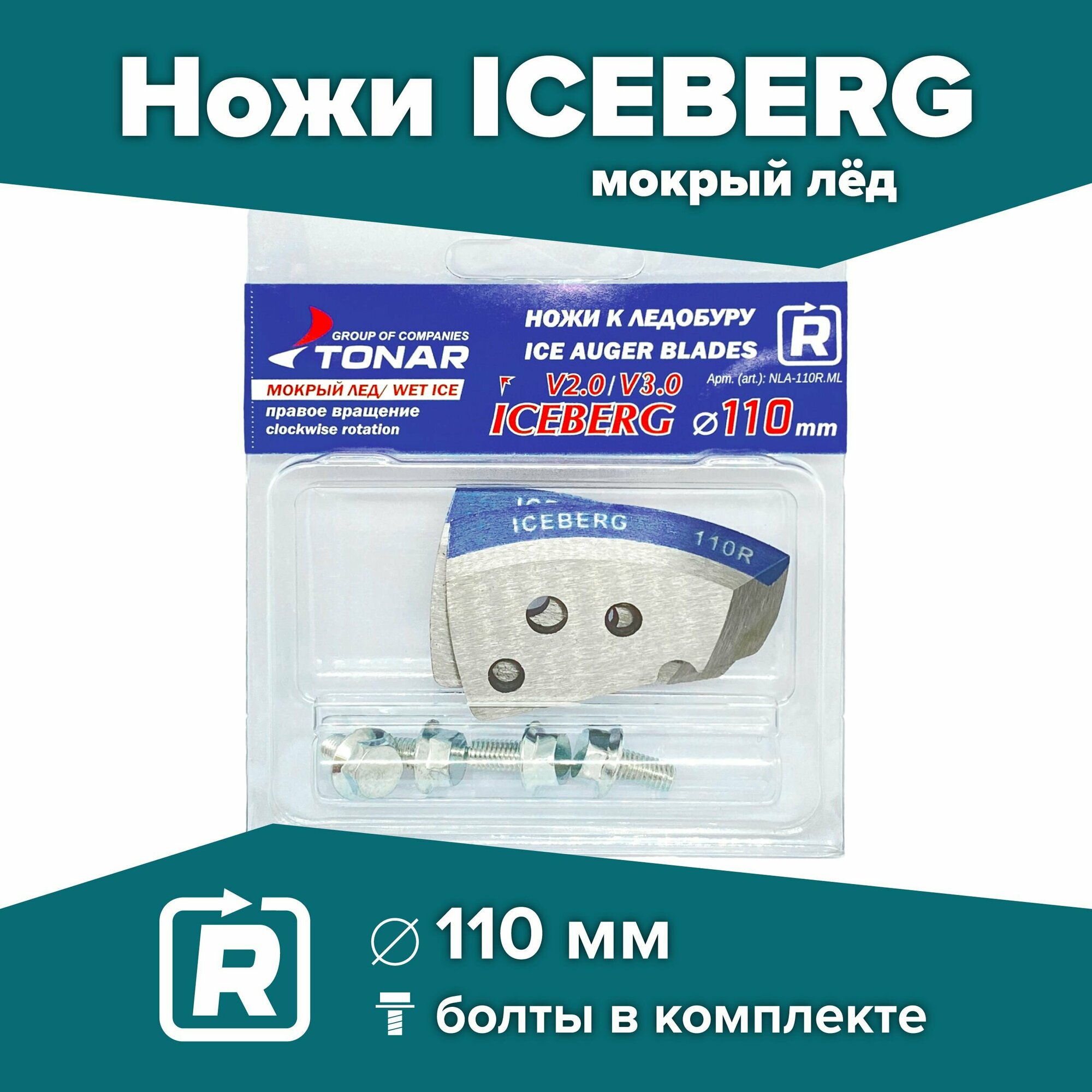 Ножи для шнека и ледобура ICEBERG-110(R) V2.0/V3.0 Тонар, мокрый лед / 2 комплекта, правое вращение