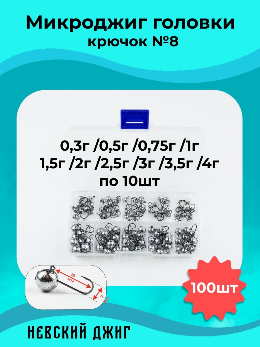 Купить Грузила Микроджиг головки 0.3-4 гр (крючок рыболовный №8) набор 100 шт в контейнере на спиннинг ультралайт