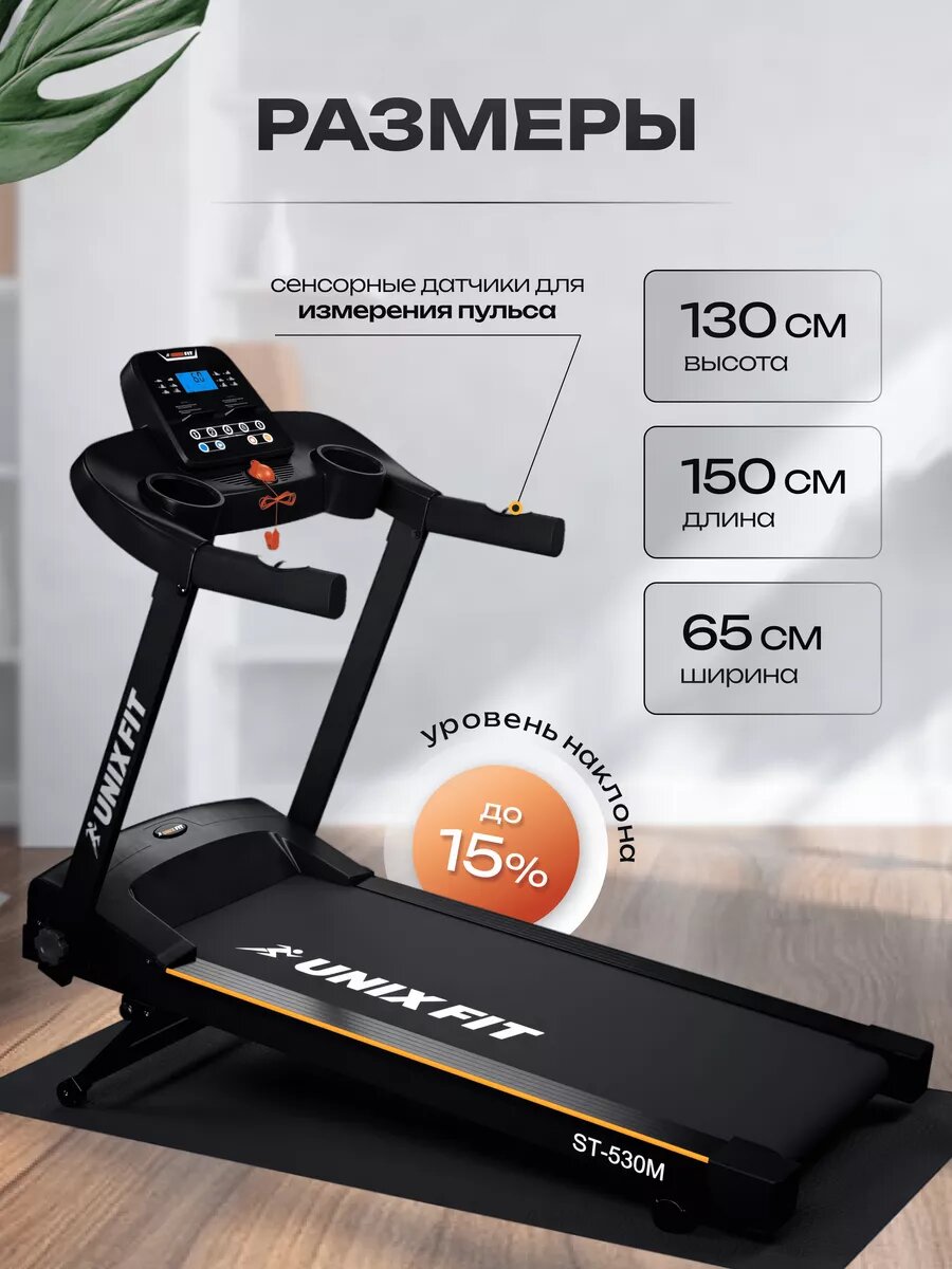 Беговая дорожка Unixfit ST 530M, складная, электрическая, амортизация, до 110кг, черная интересное: