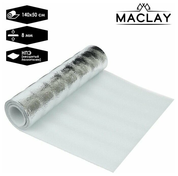Коврик туристический maclay, с фольгой, 140х50х0.8 см, цвет белый