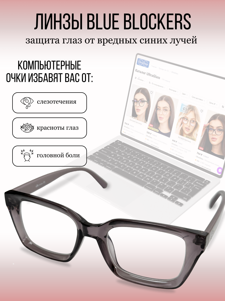 Купить Очки для компьютера UltraGlass, антибликовые, квадратные, без диоптрий