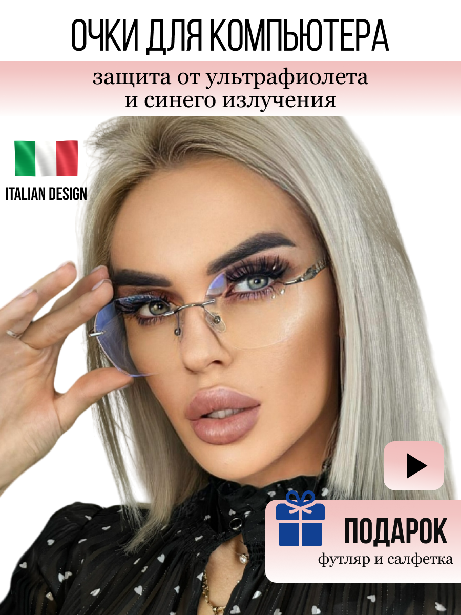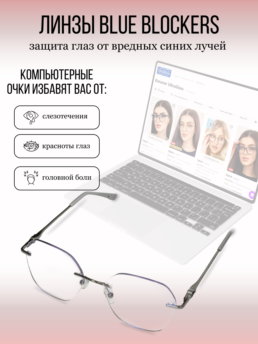 Купить Очки компьютерные имиджевые UltraGlass многоугольные, антибликовые без оправы