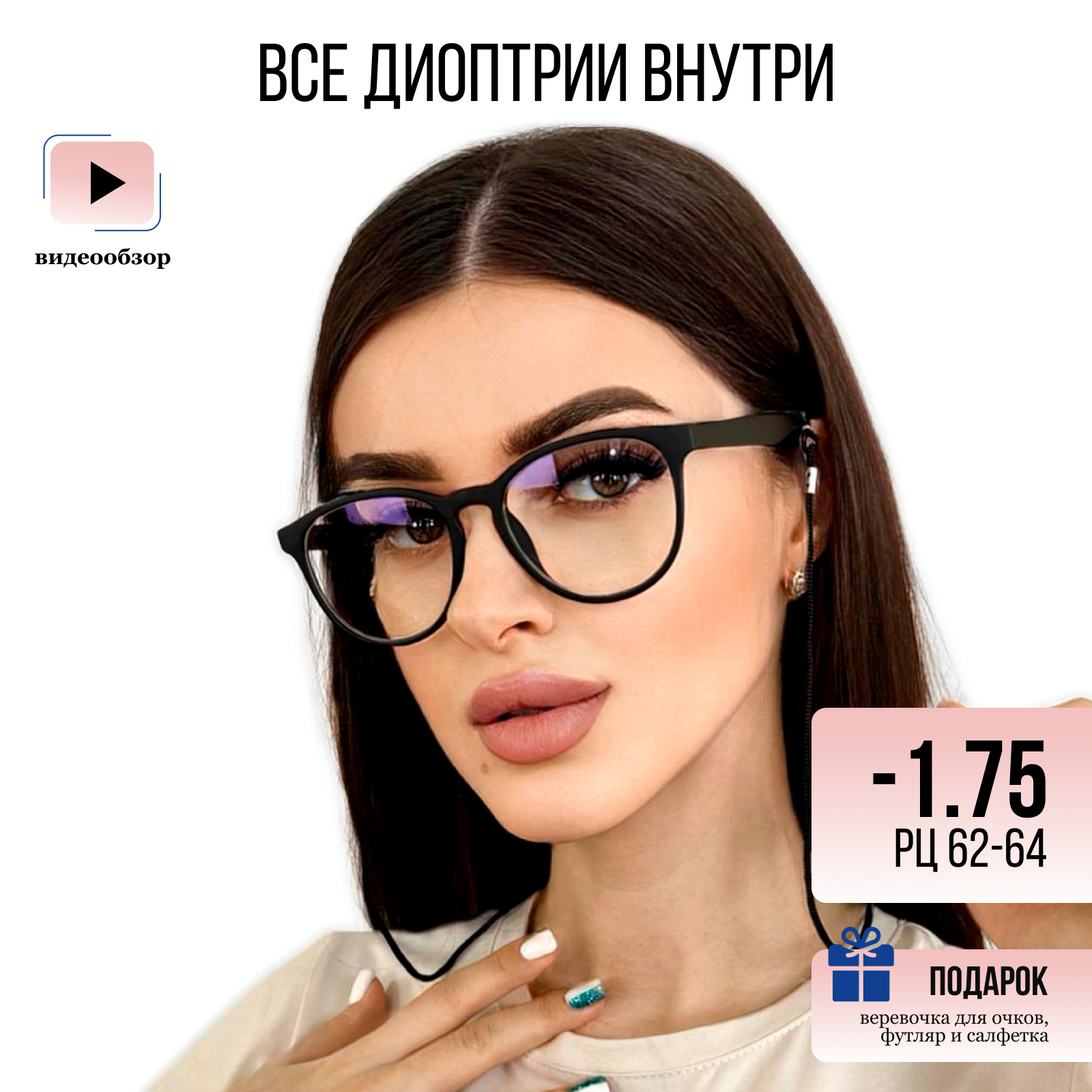 Купить Женские очки UltraGlass с диоптриями -1,75, прозрачные линзы, черный цвет оправы