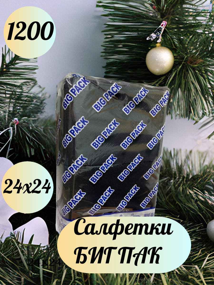 Салфетки бумажные чёрные 1200 шт (3х400), сервировочные.,"БигПак" 24х24 см интересное:
