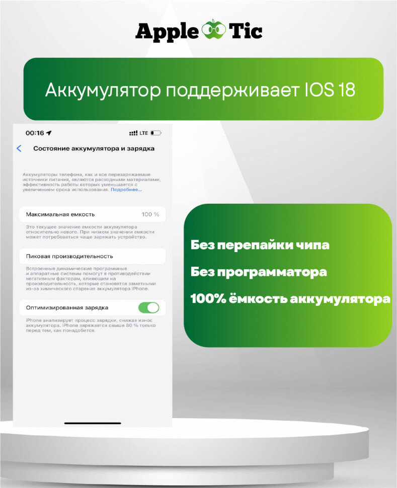 Аккумулятор для iPhone 13 Pro 3095mAh, Li-ion, А2656, A2638, A2483, A2636, A2639, A2640