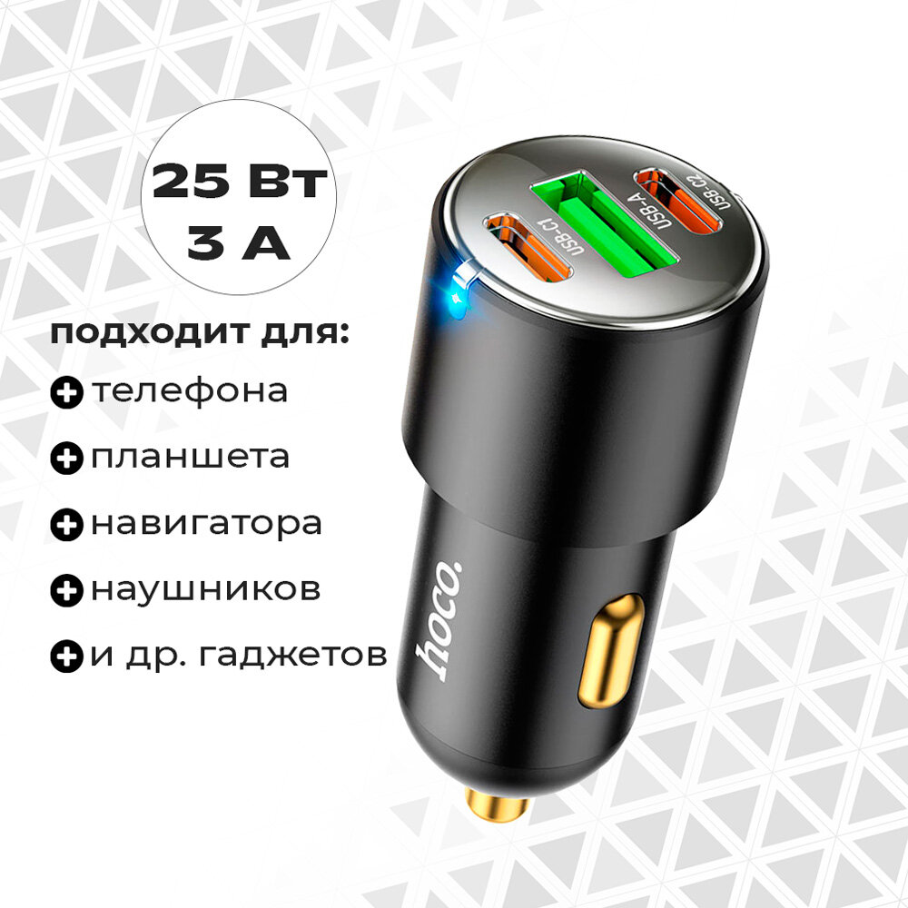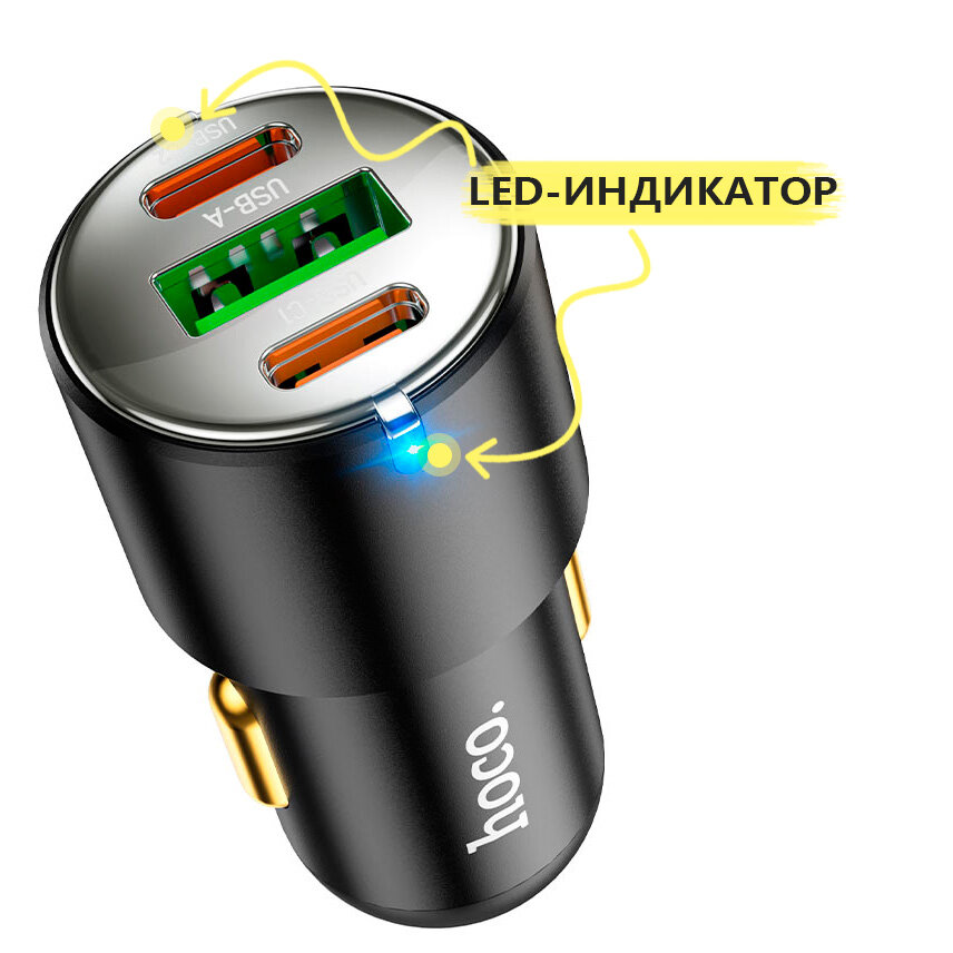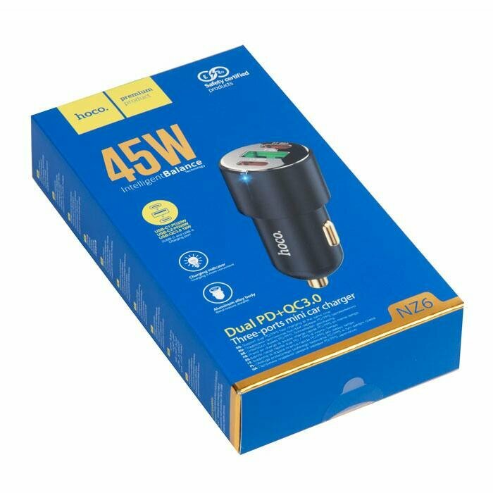 Автомобильное зарядное устройство, 1 USB QC3.0+2 PD 45W (NZ6), HOCO, черный интересное: