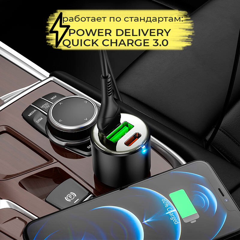 Автомобильное зарядное устройство PD25W QC3.0 NZ6
