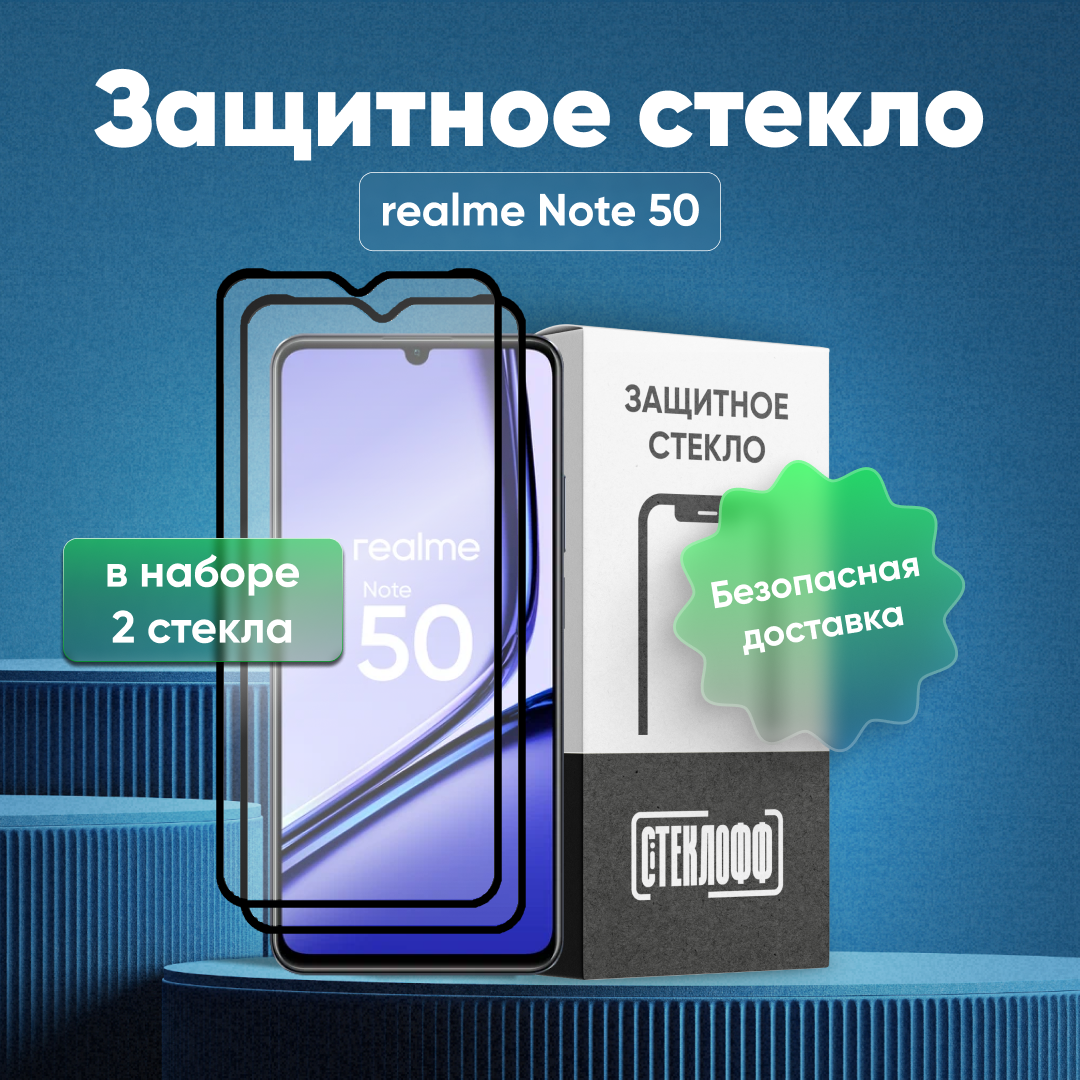 Набор защитных стекол для realme Note 50 c полным покрытием, серия Стеклофф Base, 2 шт интересное: