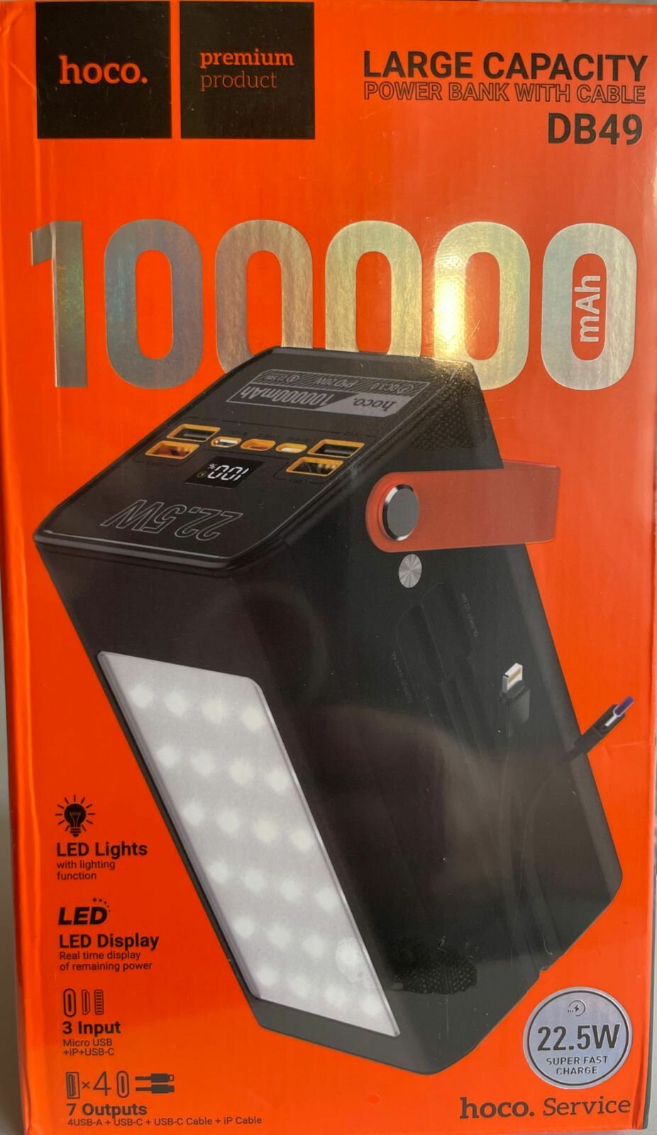 Купить Power Bank (повербанк с быстрой зарядкой) HOCO DB49 100000mAh + LED Фонарик