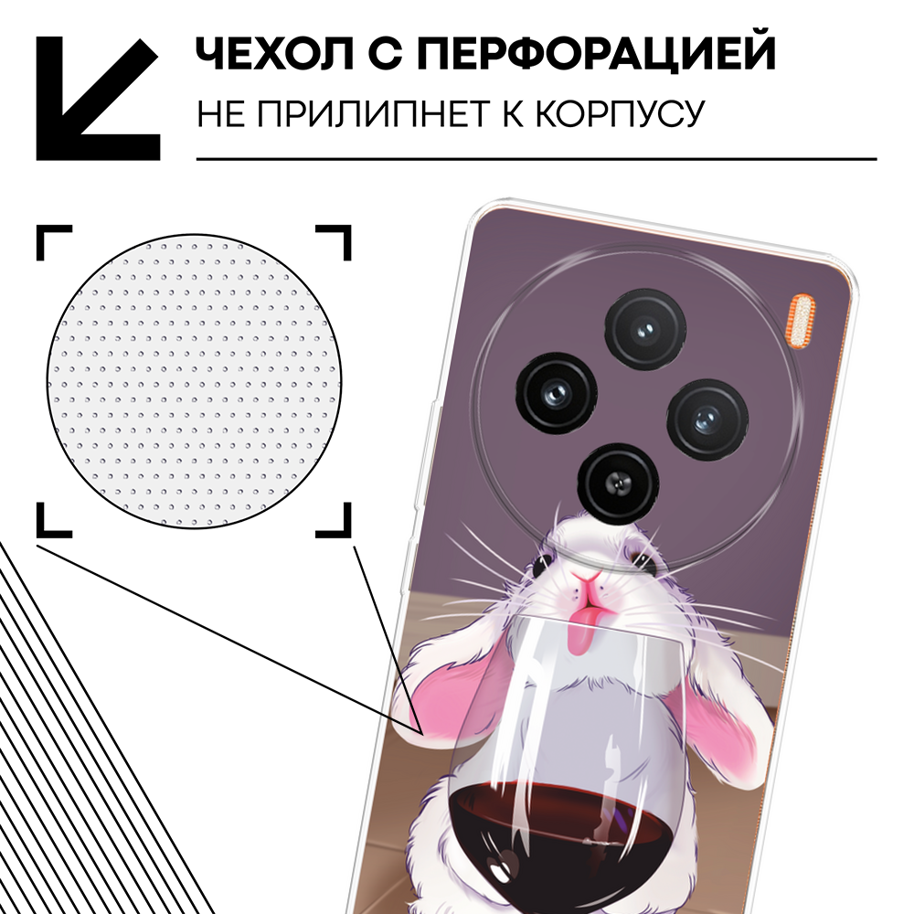 СохранитьСиликоновый чехол на Vivo X100 / Виво X100 с принтом Заяц с вином интересное: