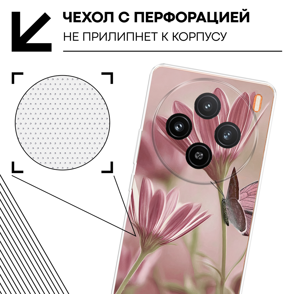 СохранитьСиликоновый чехол на Vivo X100 / Виво X100 с принтом Цветы и бабочка интересное: