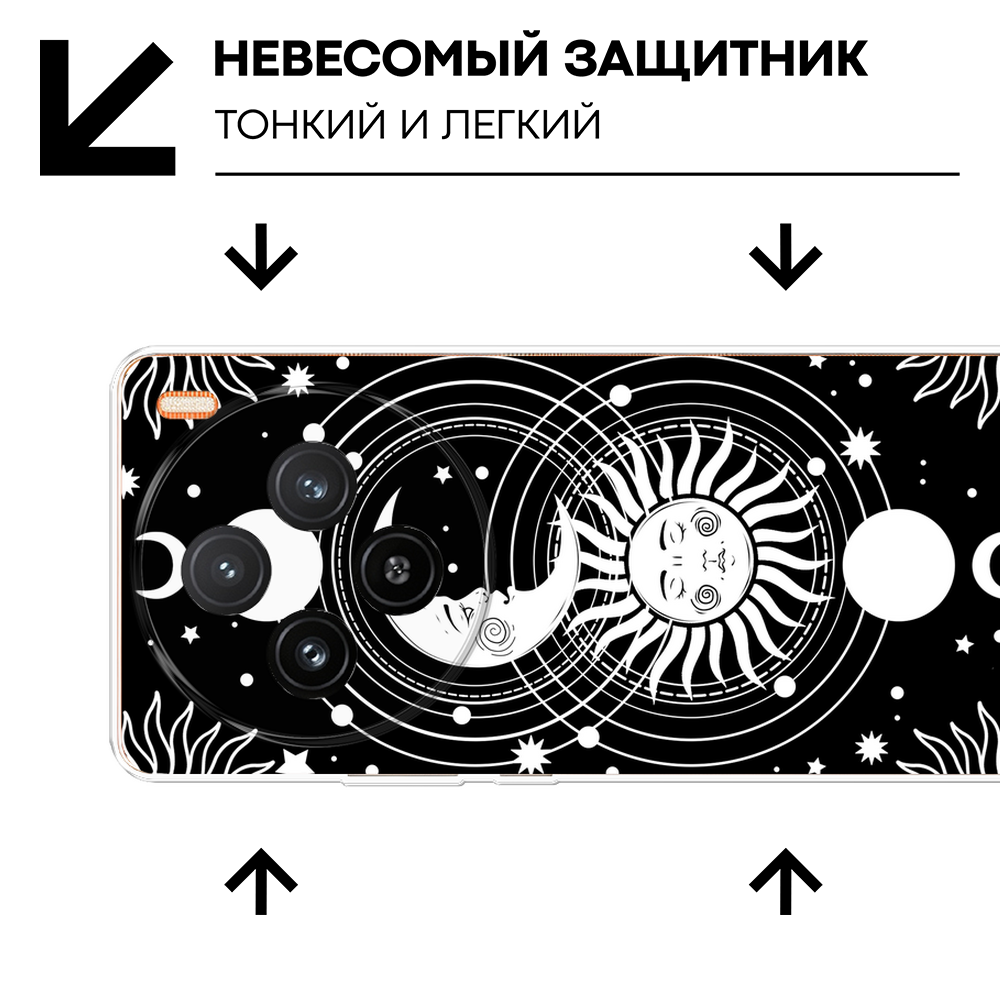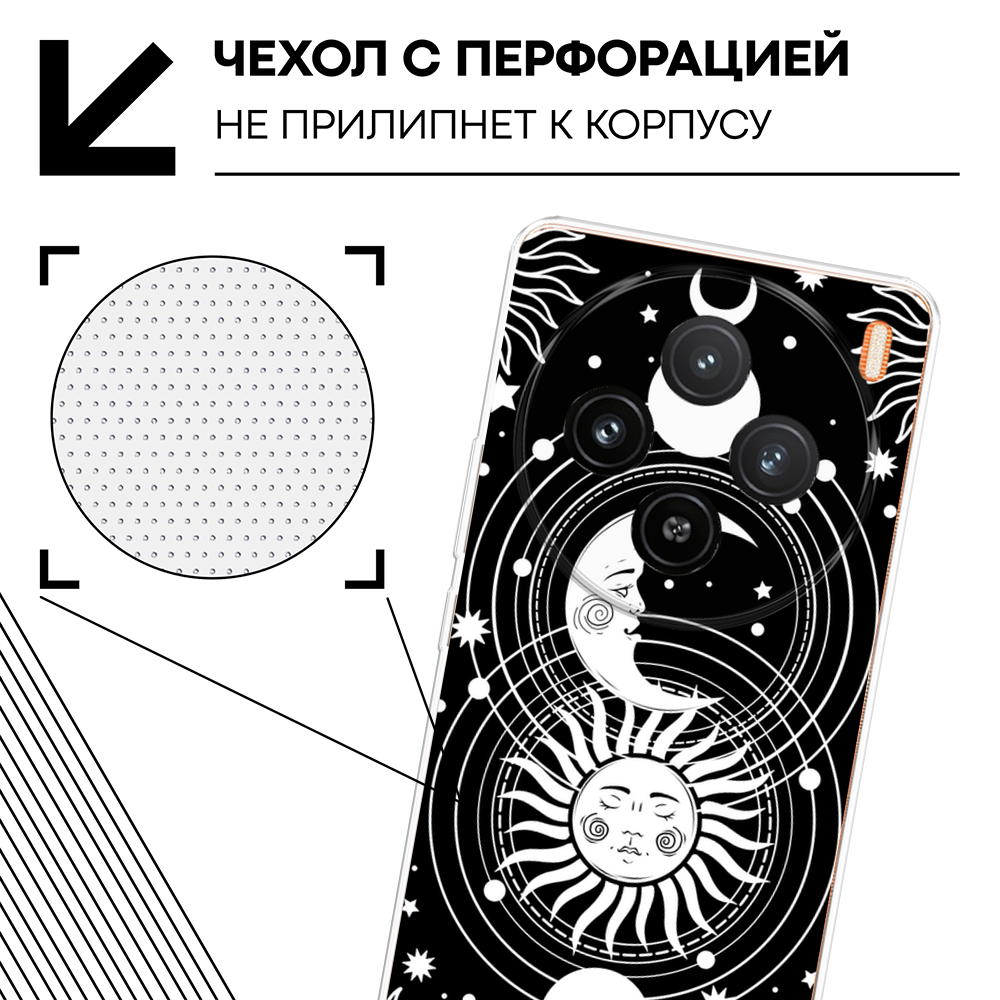 СохранитьСиликоновый чехол на Vivo X100 / Виво X100 с принтом Дуэт Солнца и Луны интересное: