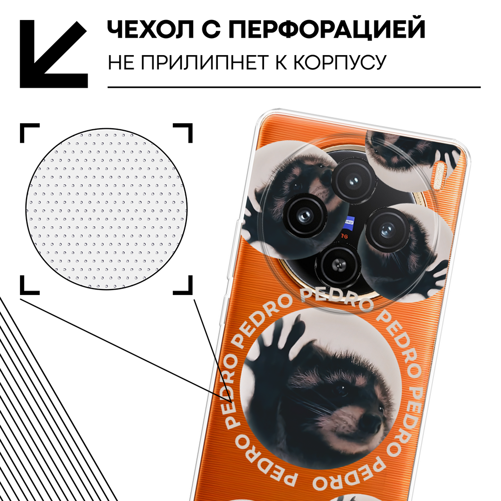 СохранитьЧехол на Vivo X100 / Виво X100 с принтом Енот Педро, прозрачный интересное: