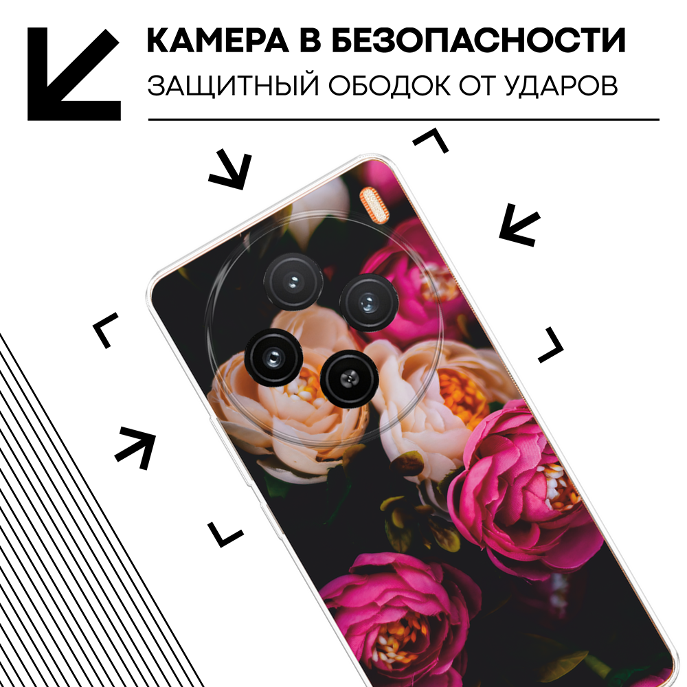 СохранитьСиликоновый чехол на Vivo X100 / Виво X100 с принтом Бордовые пионы интересное: