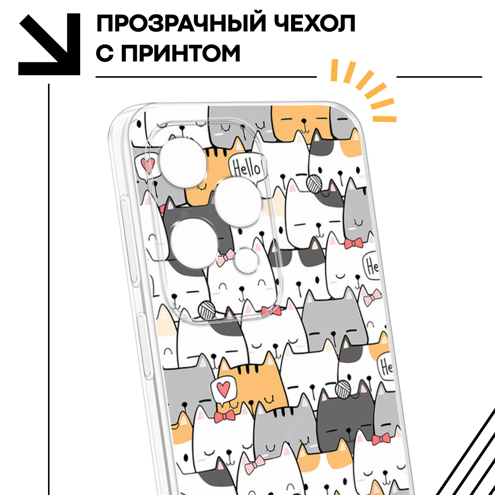 Чехол на Vivo X100 / Виво X100 с принтом Домашние коты, прозрачный
