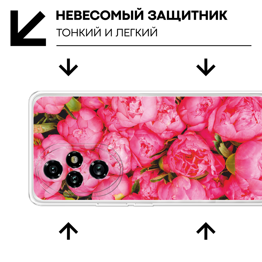 СохранитьСиликоновый чехол на Honor 200 Pro / Хонор 200 Про с принтом Пионы интересное:
