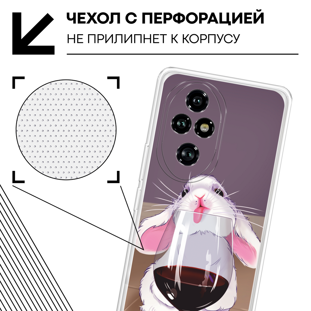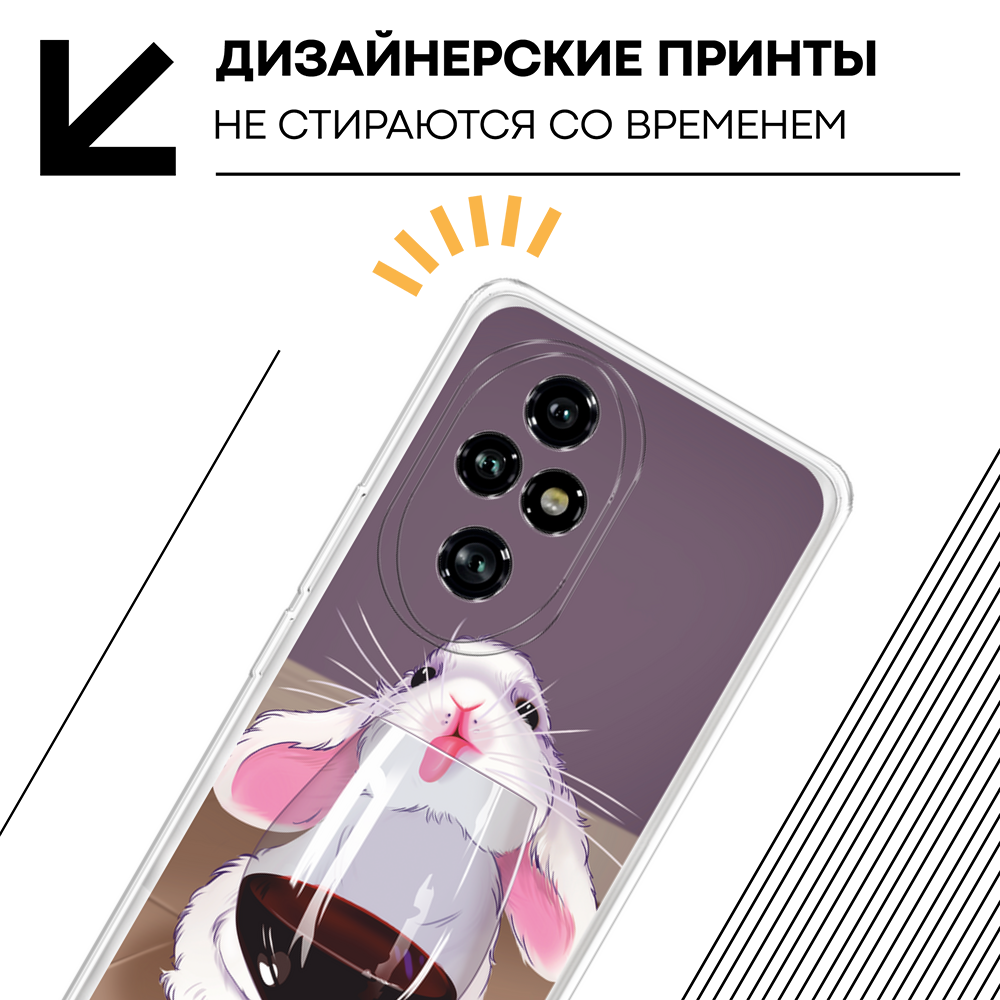 СохранитьЧехол на Honor 200 Pro / Хонор 200 Про с принтом Заяц с вином интересное: