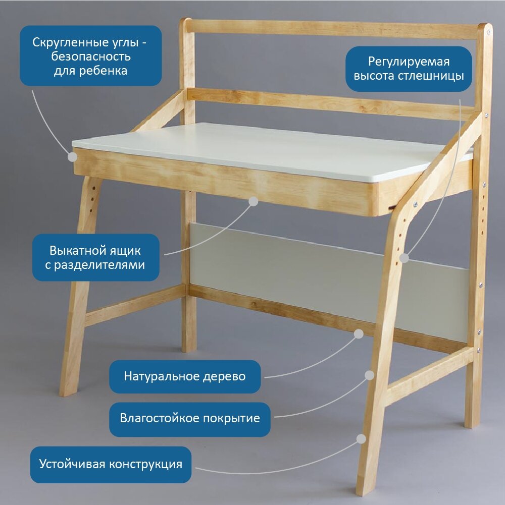 Стол парта растущий 38 попугаев UNO (Комбо белый) интересное: