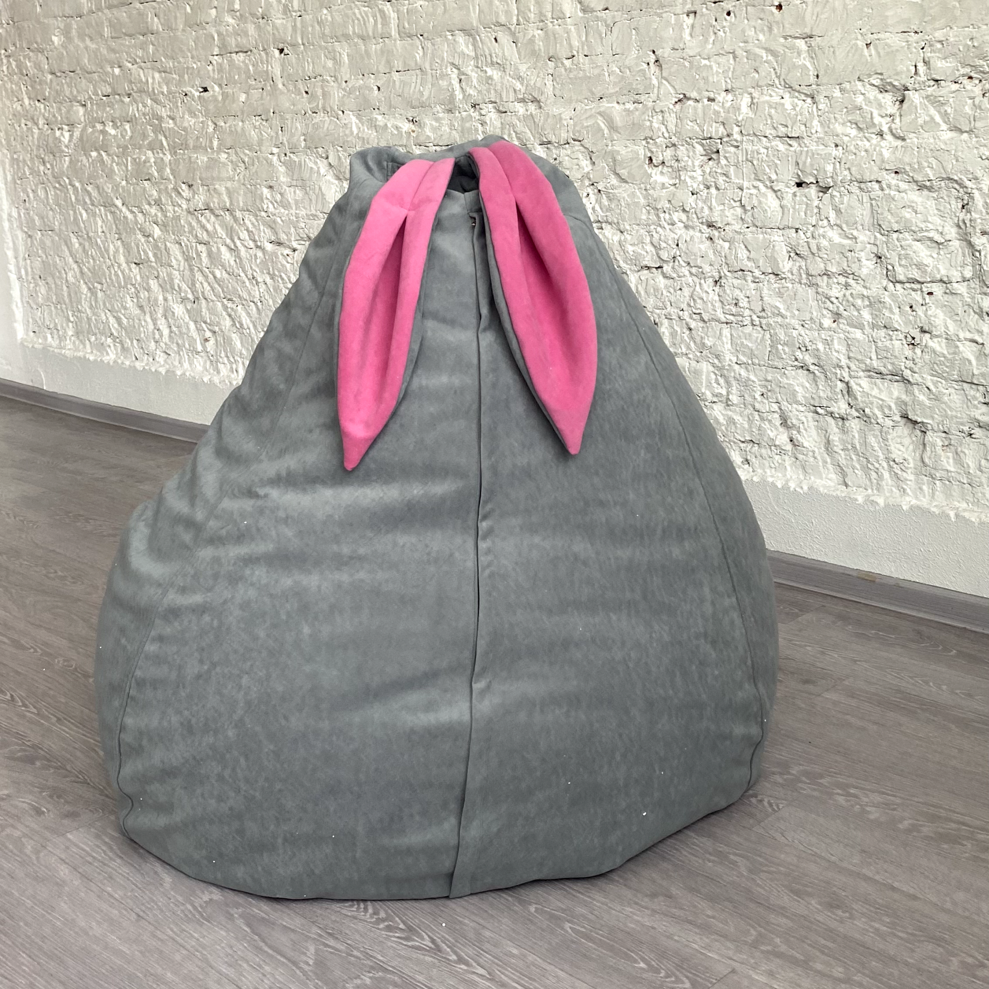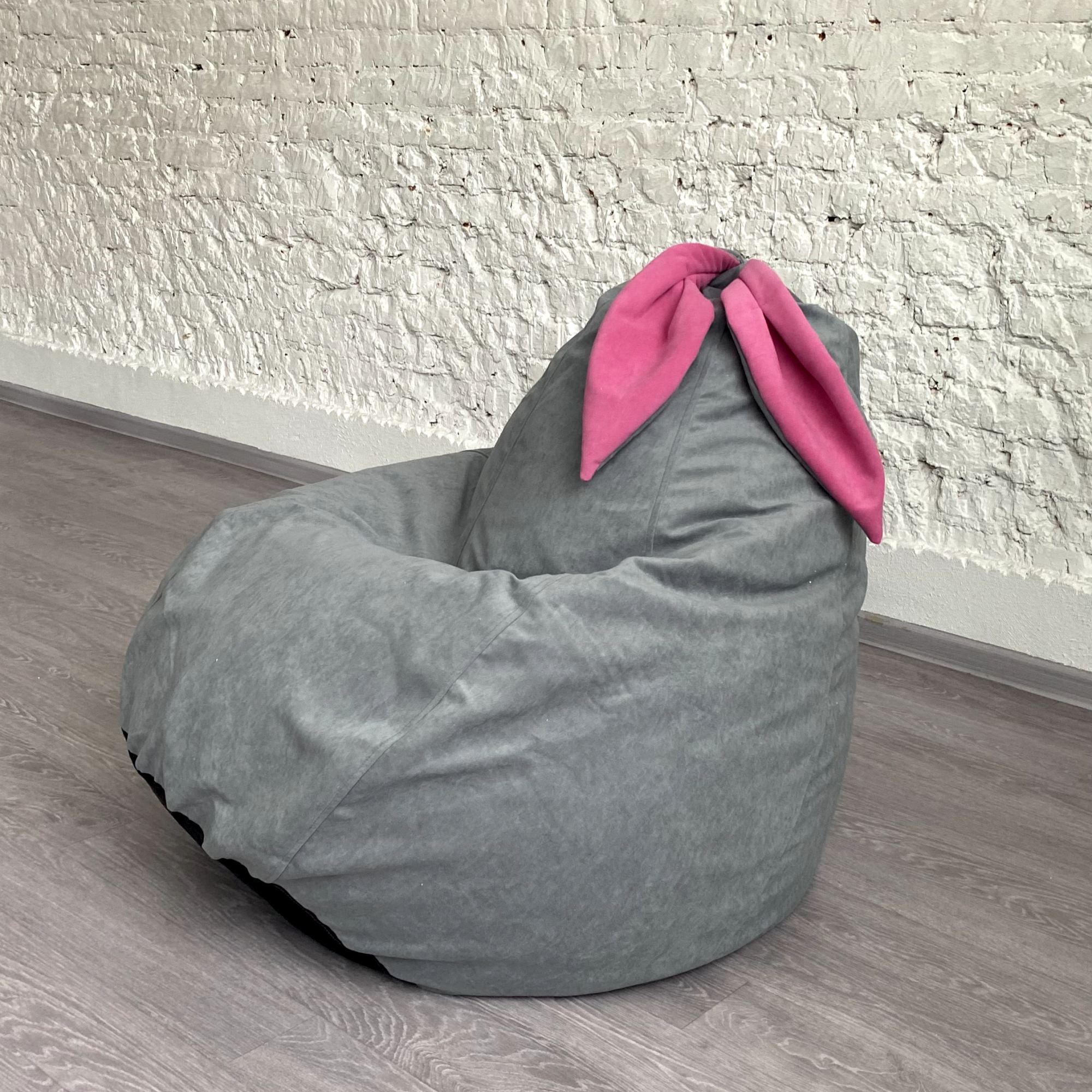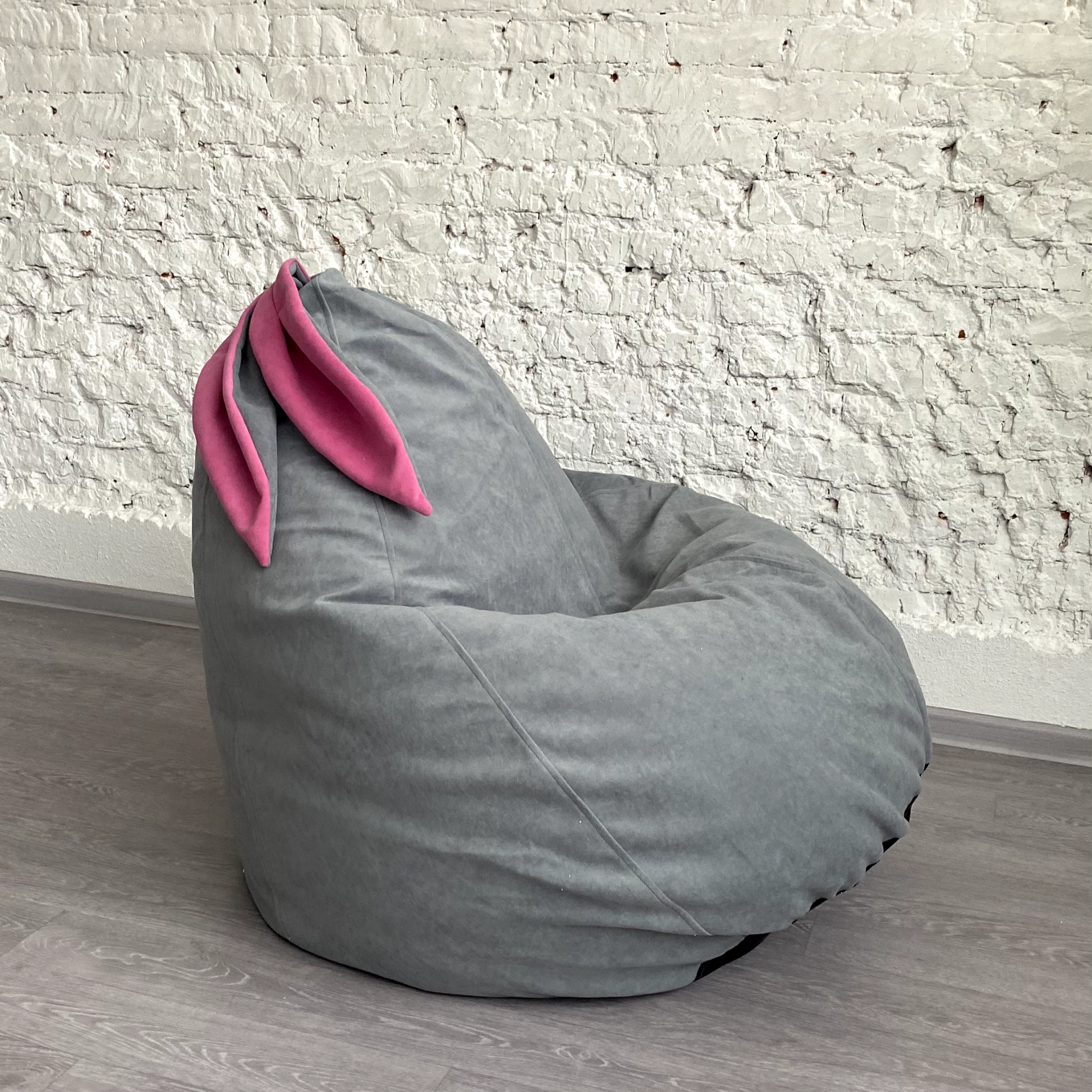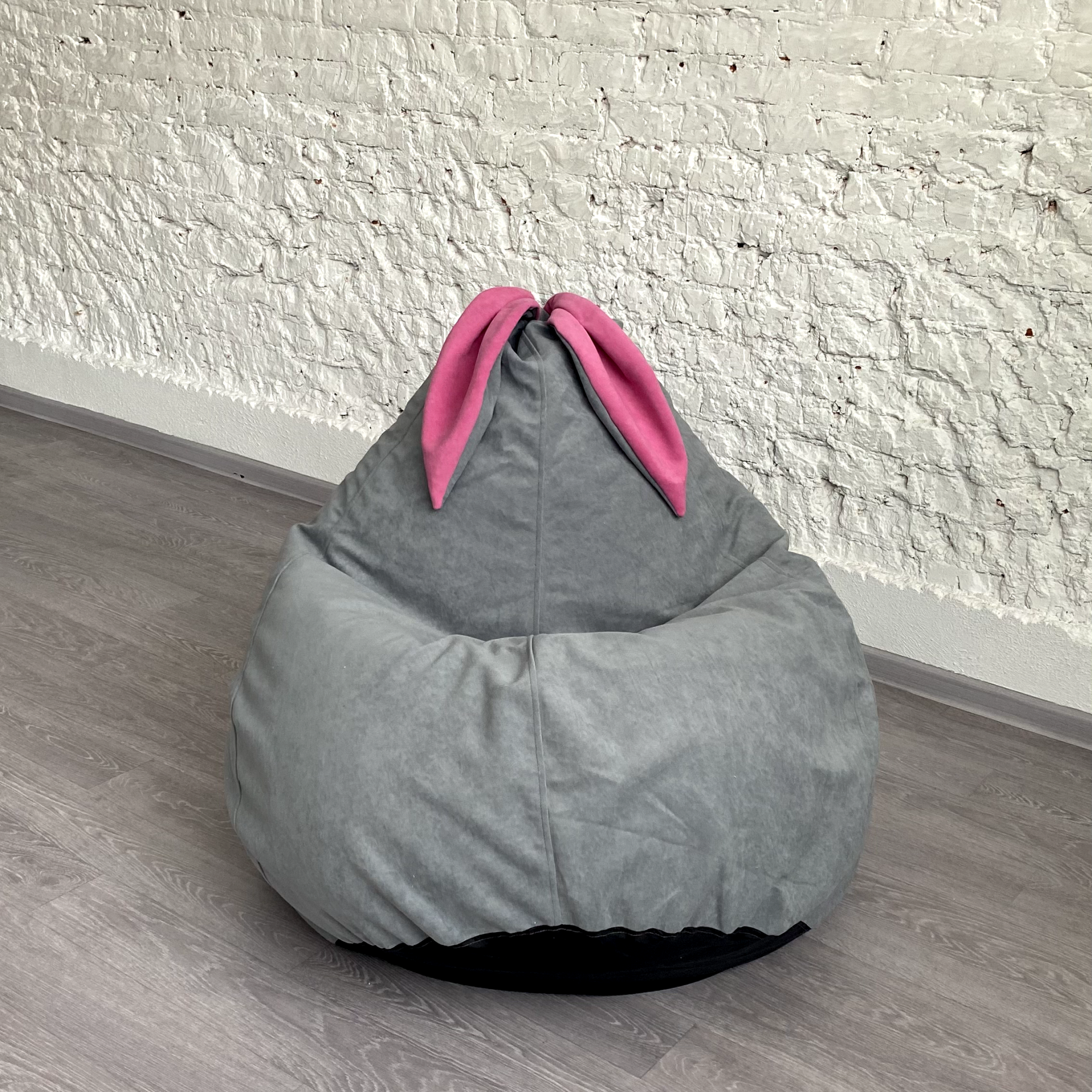 Купить Кресло-груша для детей и взрослых АртБинБэг «Ушастик», ткань "Велюр", светло-серый с розовыми ушами, размер XXL