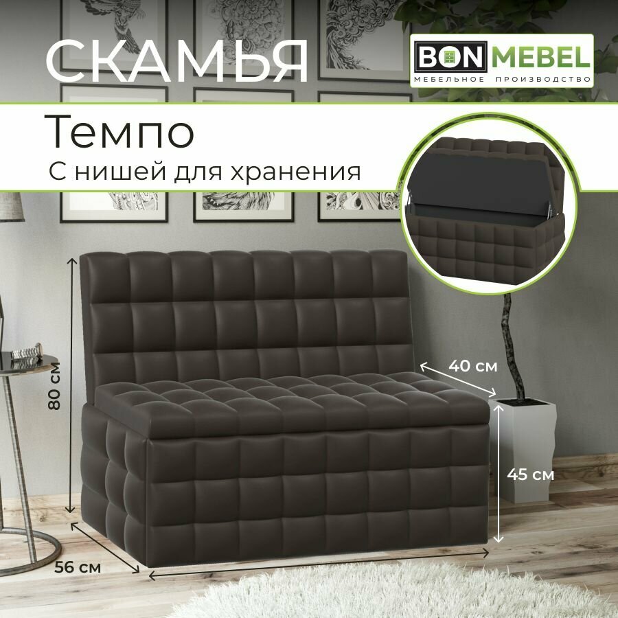 Диван Темпо на кухню, BONMEBEL, коричневый, экокожа, диван для кухни, диван в гостиную, с ящиком, диван для прихожей