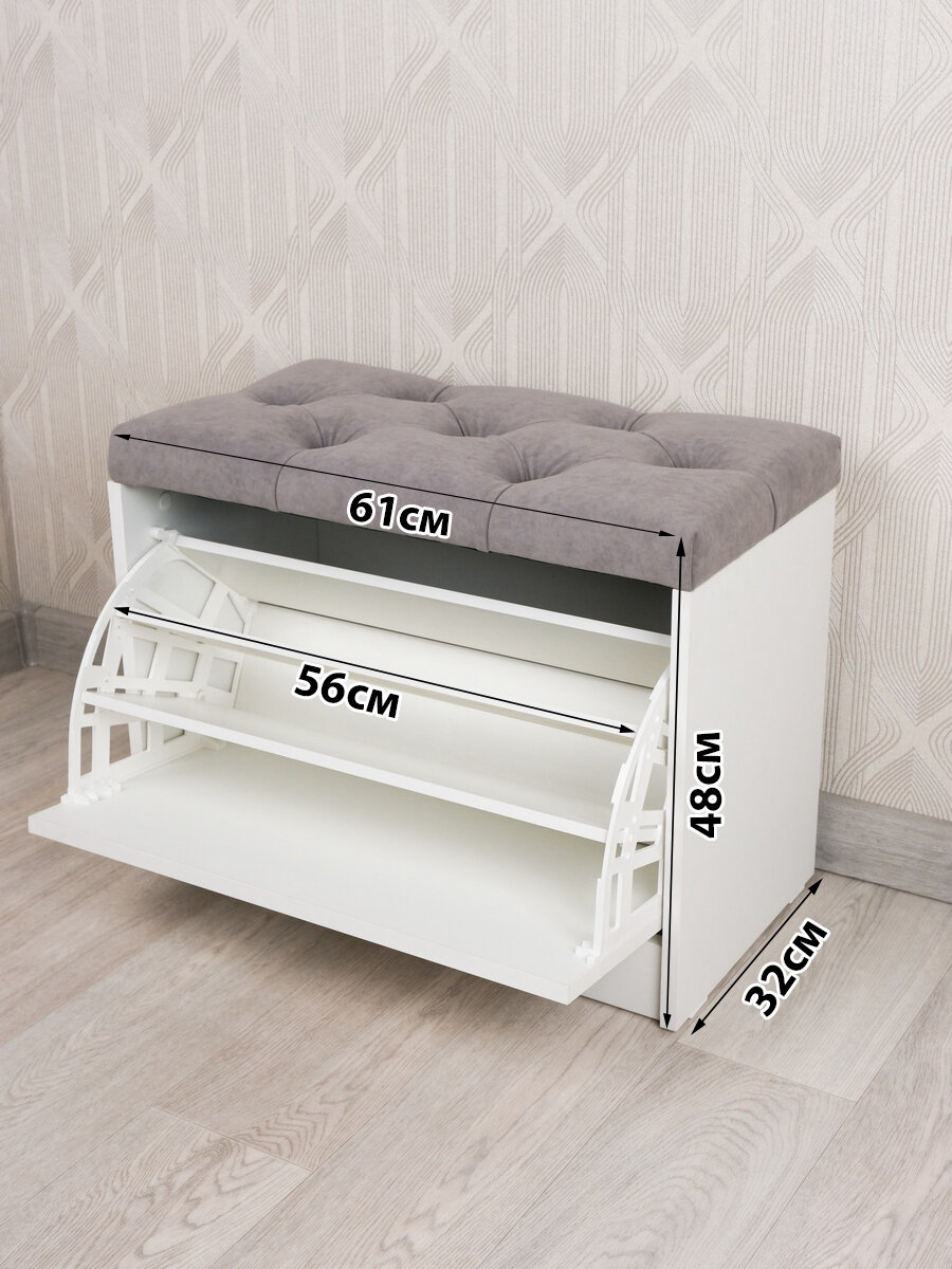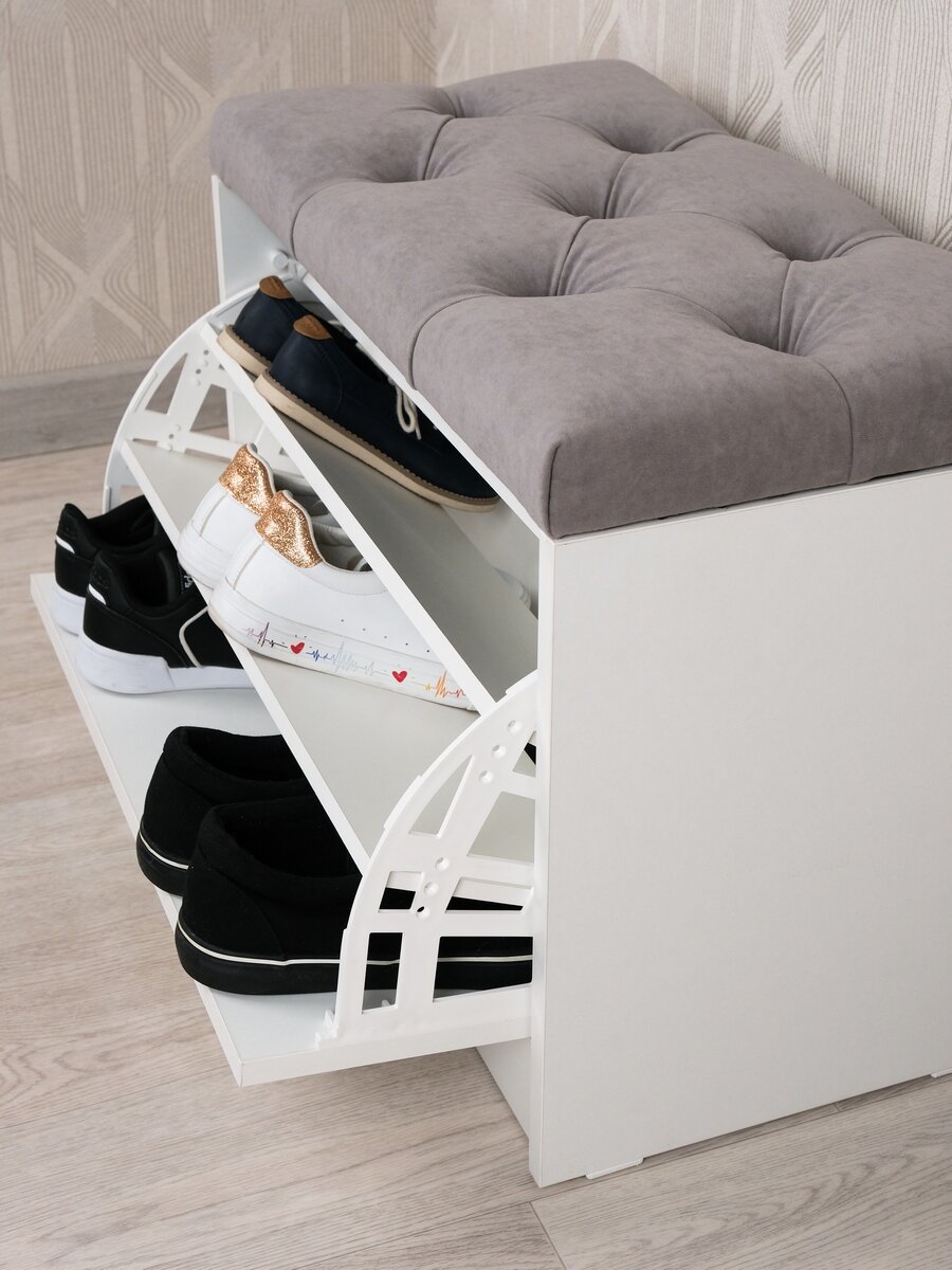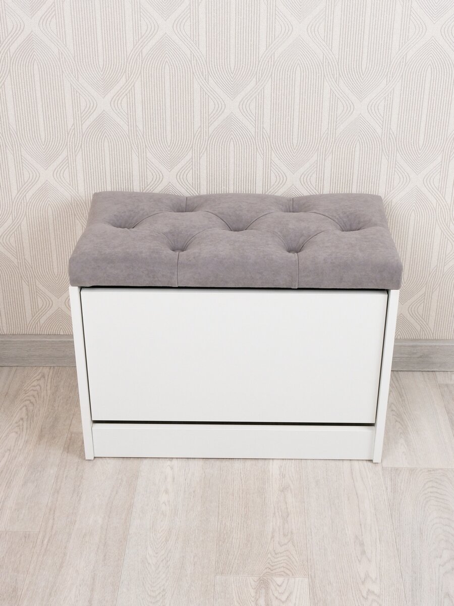 Купить Пуфик в прихожую с обувницей Puffsib А-4, белый/серый