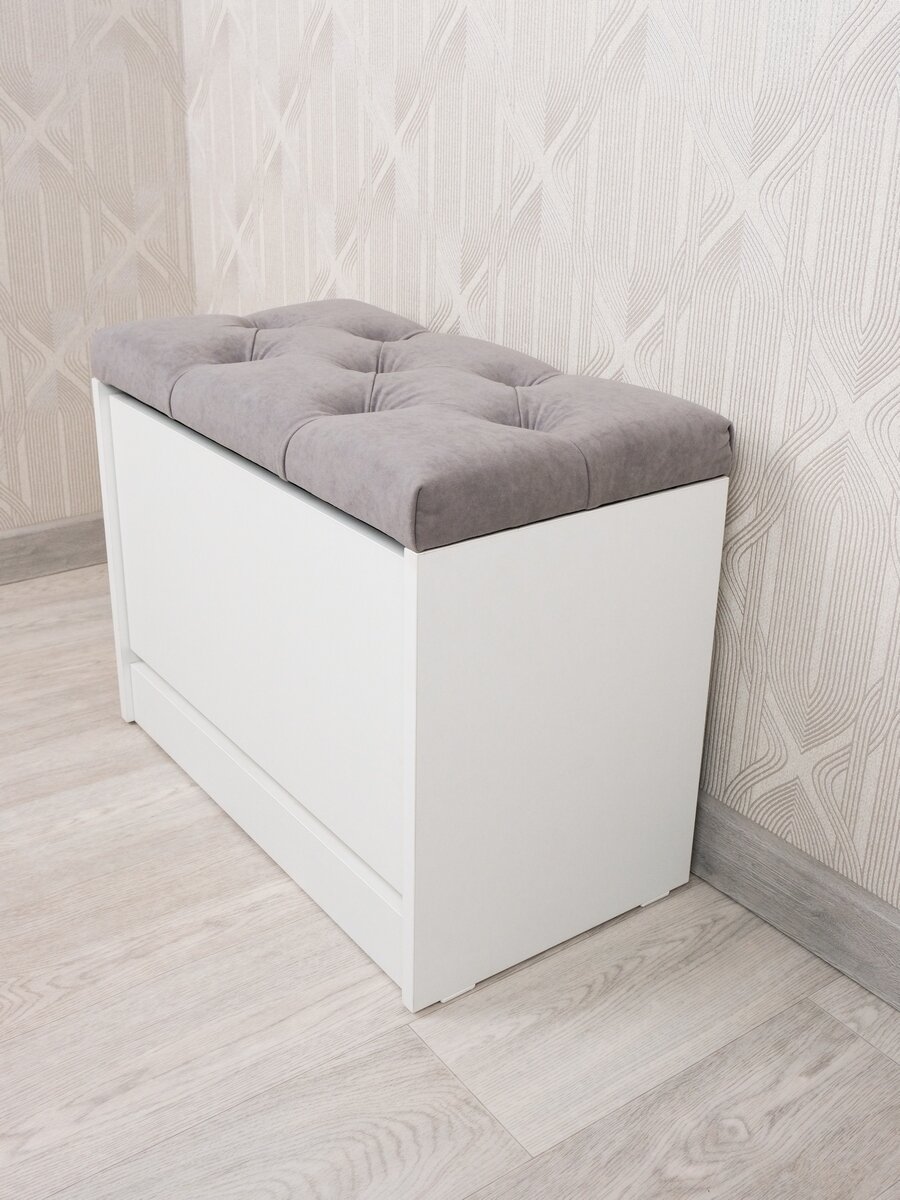 Пуфик в прихожую закрытый с обувницей Puffsib А-4, белый/серый