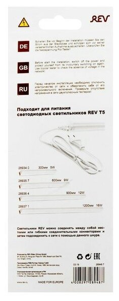 Шнур питания для светильника сд линейного T5 Line REV 28948 7 интересное: