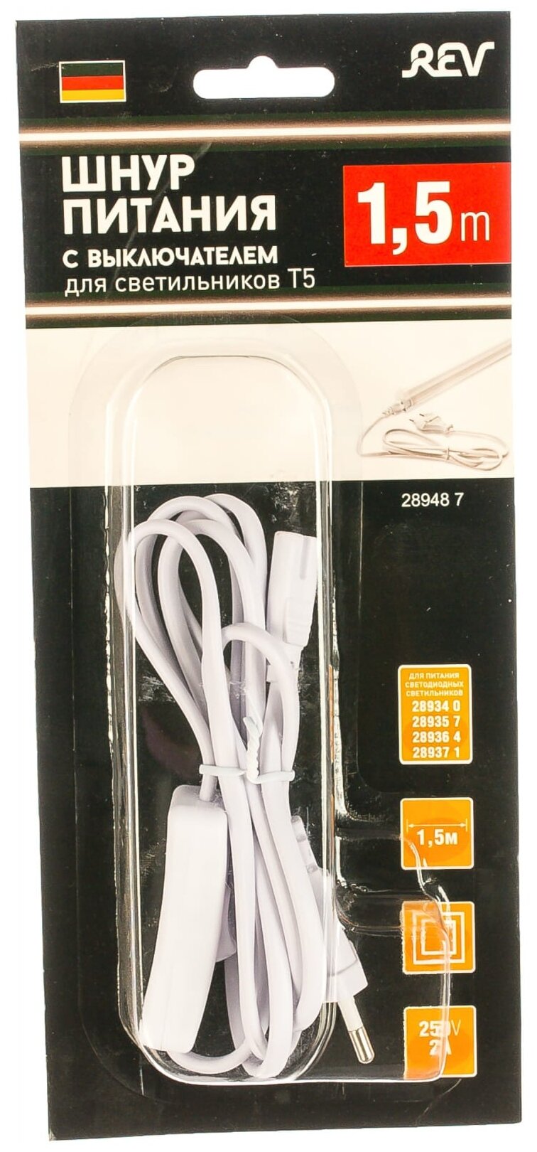 Шнур питания с выключателем для светильника сд линейного T5 Line 1,5 м (Блистер), REV 28948 7