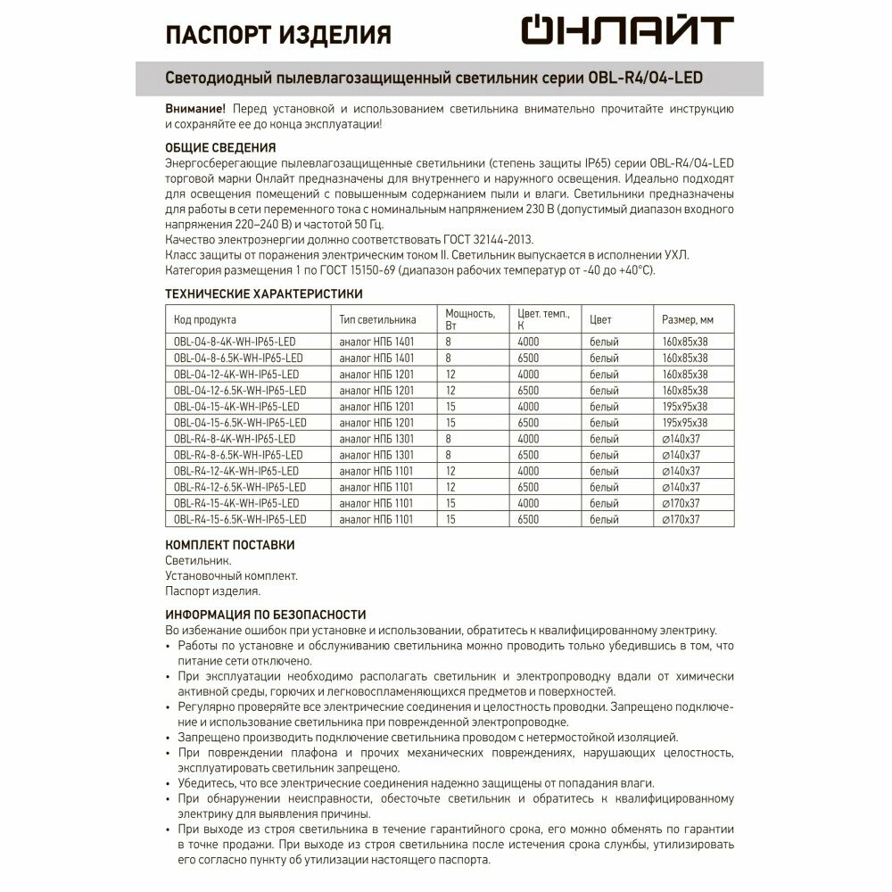 | Производитель | ОНЛАЙТ |