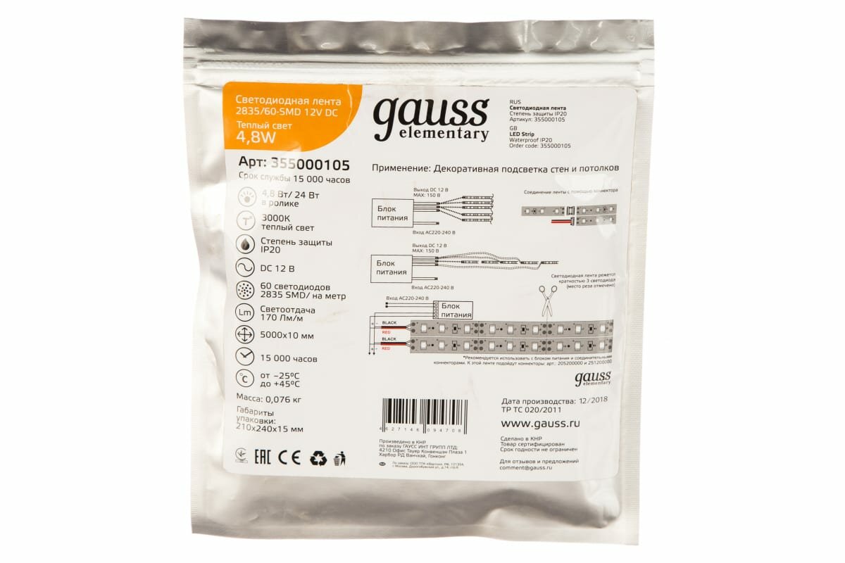 Лента Gauss led elementary 2835 355000605