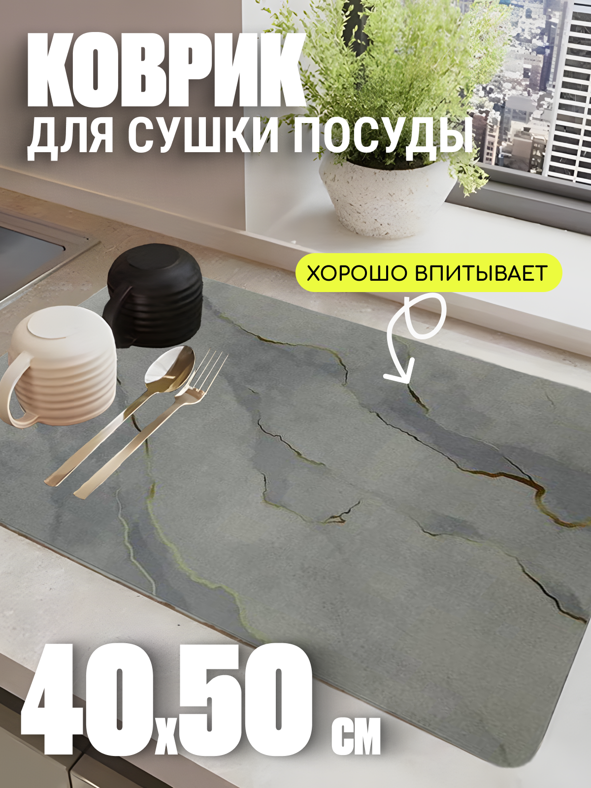 Коврик для сушки посуды Edilium Gray Marble, серый, 40 x 50 см интересное: