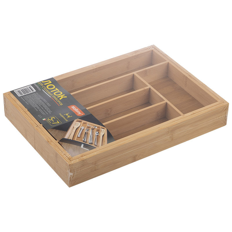 лоток для столовых приборов MALLONY Bamboo 36х26-38х5,5см 5(+2) секций раздвижной бамбук