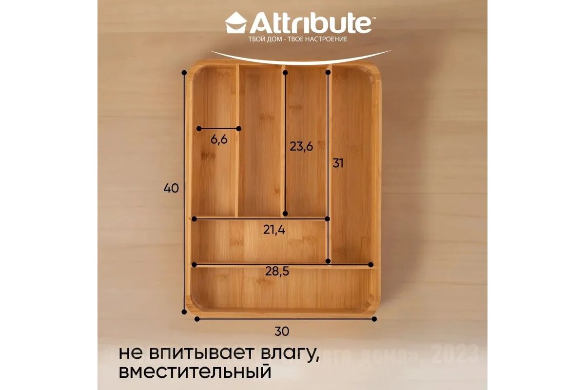 Лоток для столовых приборов Attribute Gadget Bamboo Touch 40x30x4см (agb500) .