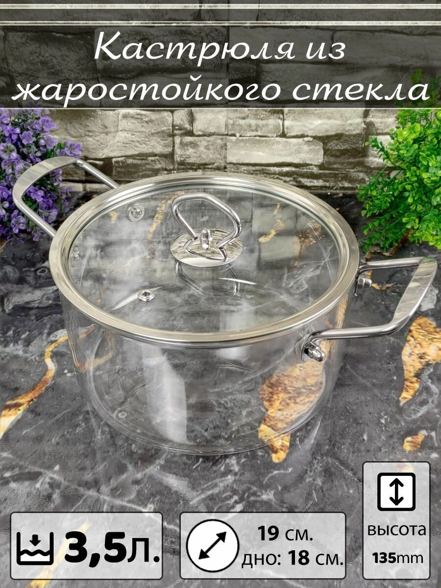 Кастрюля ITALIANO, объем 3,5 л, из жаропрочного боросиликатного стекла с крышкой с пароотводом