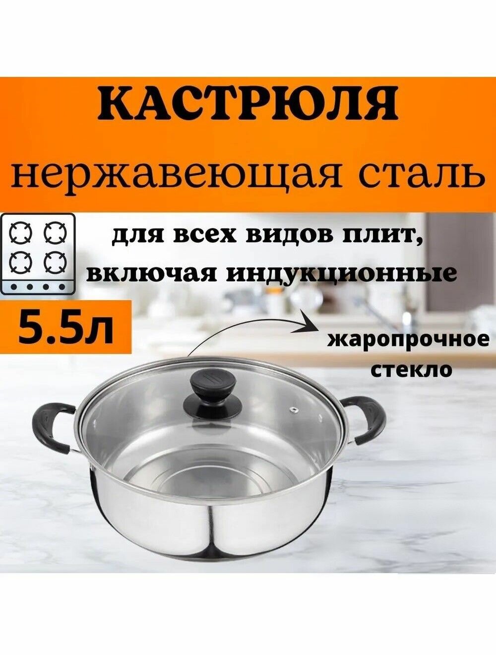 СохранитьКастрюля Promo, объем 5,5 л, из нержавеющей стали с крышкой из жаропрочного стекла интересное: